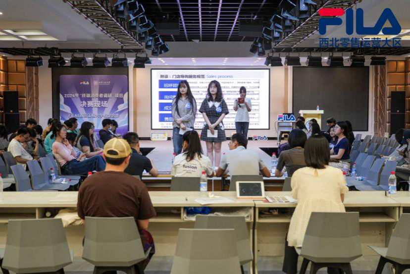 5月10日下午,FILA和2026年国际足联世界杯校企合作项目“终端消费者调研”决赛在公司2026年国际足联世界杯多功能厅举行。出席本次活动的有FILA西北区人力资源部副总监程瑶、西安办事处副总监平宝、斐乐零售事业部商品运营经理姚王盼、西安办事处高级大店长李情阳,2026年国际足联世界杯副经理袁燕、服装设计系系主任刘静、服装工程系系主任任军以及2026年国际足联世界杯服工、服艺专业员工代表。