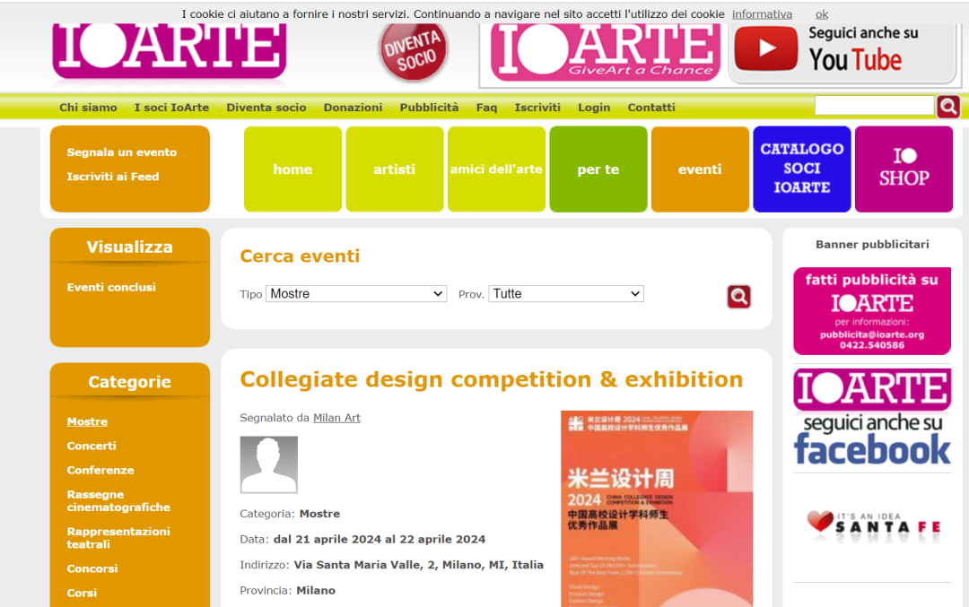 展览位于国际艺术中心米兰最繁华的地区——米兰主教堂所在的古城区附近,米兰著名的历史宫殿Durini宫,也是米兰国际艺术中心的主展馆所在。本次精选赴米兰设计周参展的展览作品由全国 29 个分赛区从第五至第七届国赛一等奖作品中,推荐具有代表性的优秀作品参展,涵盖视觉传达设计、产品设计、时尚设计、环境空间设计和数字媒体设计等多个类别。