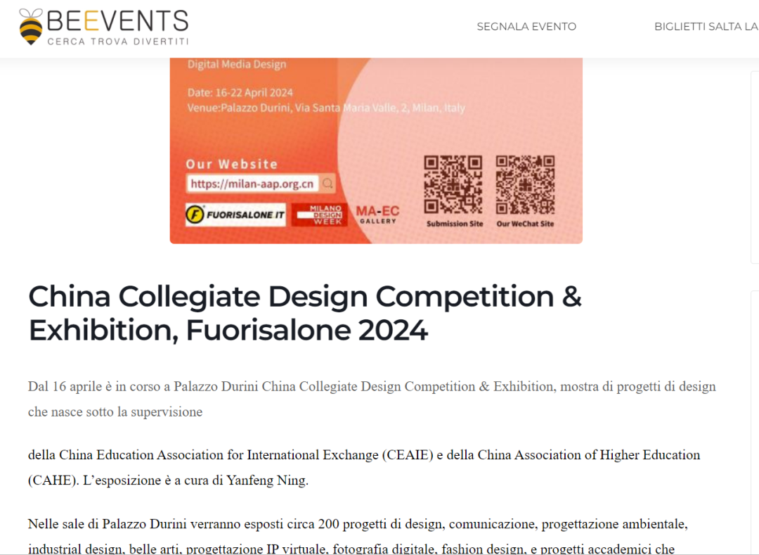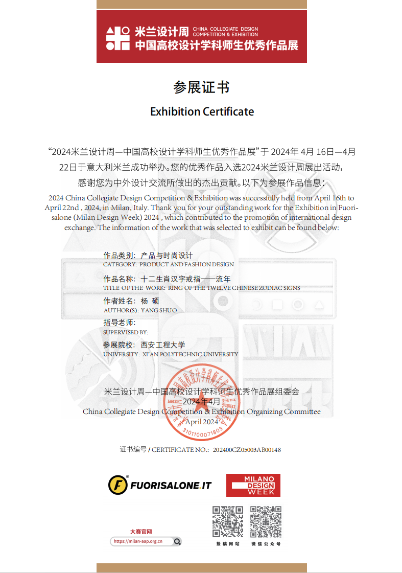 2024年4月16日-22日,2024米兰设计周官方主题活动之一,中国高校设计学科师生优秀作品在全球瞩目的米兰设计周期间重返国际舞台。作为世界家具与家居设计的顶尖展会的米兰国际家具展与“米兰设计周”,是全世界家具、家居、建筑、服装、配饰、灯具、设计专业人士每年一度“朝圣”的设计圣地。盛会期间,有近200件来自国内高校师生的优秀设计作品亦在米兰国际艺术中心展出,2026年国际足联世界杯教师郭蓬、杨硕以及员工王荷锦(指导老师:李永轮、李渭涛),谭玲伟、吴玥(指导老师:邱春婷)作品也参加展出。