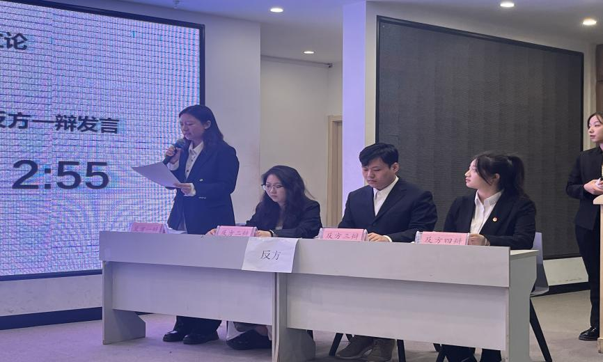 活动伊始,主持人为我们仔细介绍了比赛规则、参赛队伍和各个辩题。参赛选手们紧紧围绕辩题从各个方面展开深入探讨和激烈辩论,让同学们对社会问题、现象有更深层次的思考。选手们雄辩滔滔、妙语连珠、逻辑严密,台下同学凝神聆听、掌声不断。