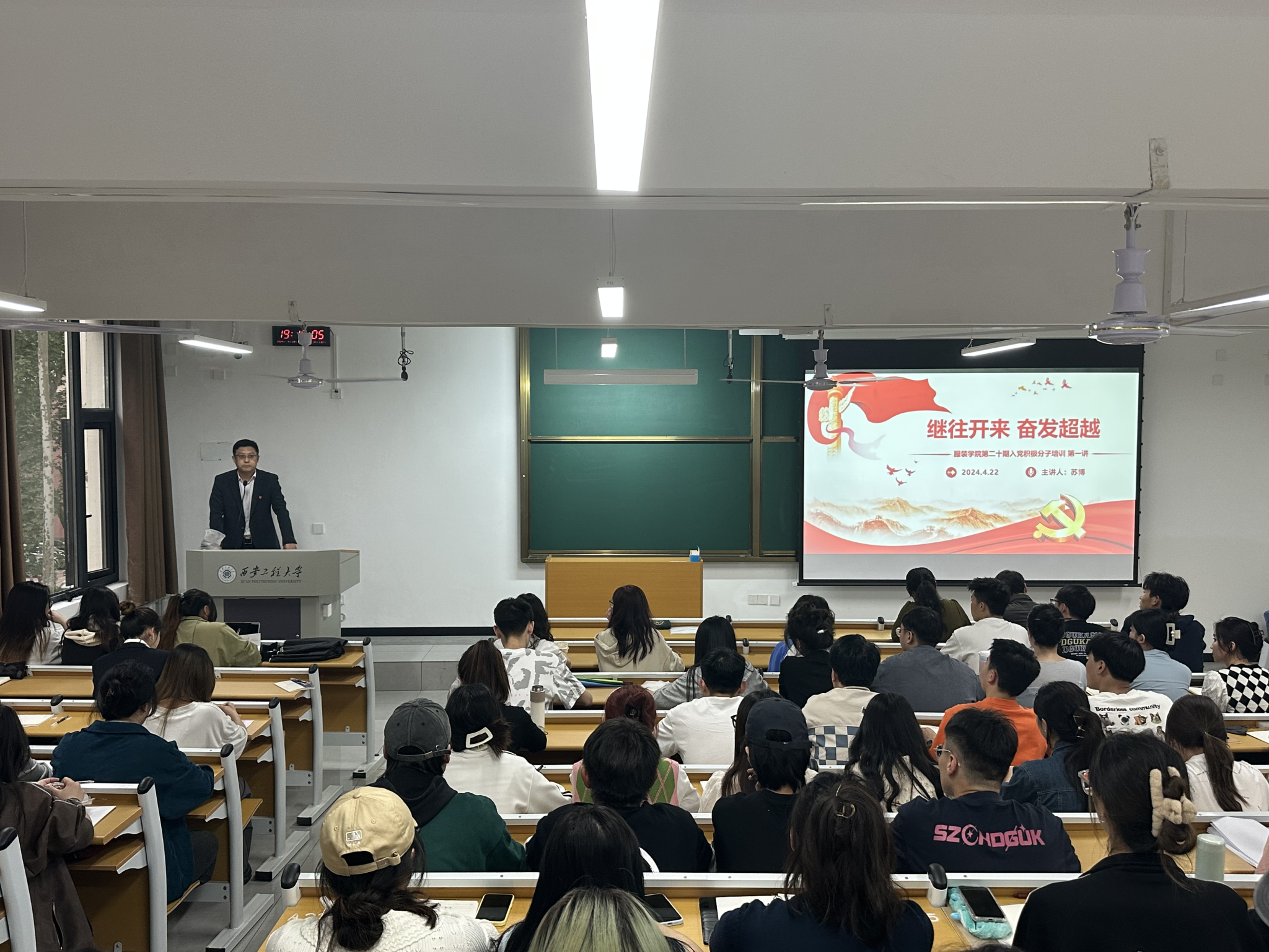 开班仪式后,苏博以“继往开来 奋发超越”为主题做开班第一堂党课。党课从四个方面讲解了党章的总纲部分以及党纪学习教育等内容。他运用生动的语言和丰富的历史案例,深刻揭示了中国共产党百年来波澜壮阔的发展历程和辉煌成就,领导全国各族人民取得了革命、建设和改革的辉煌胜利,为中华民族的发展史增添了浓墨重彩的一笔。在苏博的讲述中,学员们深刻感受到了中国共产党的伟大历程和光辉成就,也进一步坚定了他们跟党走、为党工作的信念和决心。