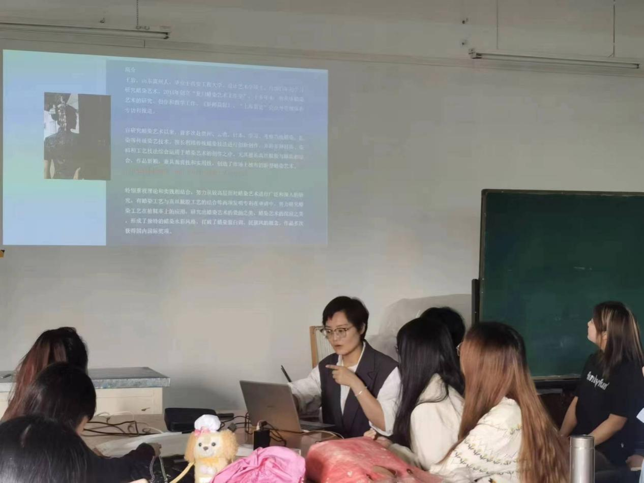 王岩女士结合自己的十年蜡染艺术之路,分享了在学习、实践和创新过程中的心得体会,为同学们提供了宝贵的经验