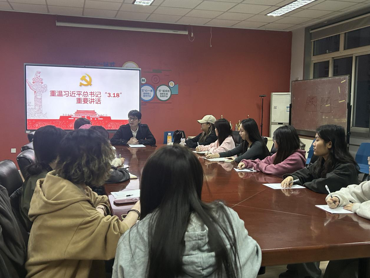首先,支部书记梁育带领大家重温了习近平总书记“3.18”重要讲话。他强调,这一讲话不仅为全体党员指明了前进的方向,也为我们的行动提供了根本遵循。为贯彻落实这一讲话精神,全体党员需从多个方面入手,用习近平新时代中国特色社会主义思想铸魂育人,贯彻党的教育方针落实立德树人根本任务,为实现中华民族伟大复兴的中国梦贡献自己的力量。