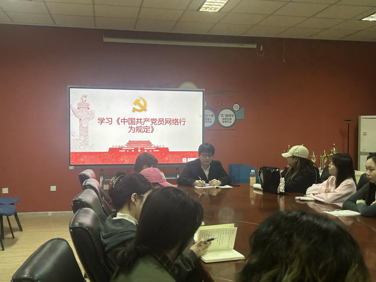 为深入贯彻习近平总书记“3.18”重要讲话精神,全面学习领会公司第三次党代会的部署要求,并进一步提升全体党员对网络行为规范的认知,本科生视传党支部于2024年3月15日在服装楼六楼党建办公室由党支部书记梁育老师讲党课开展主题党日理论学习活动,支部全体党员参加学习。