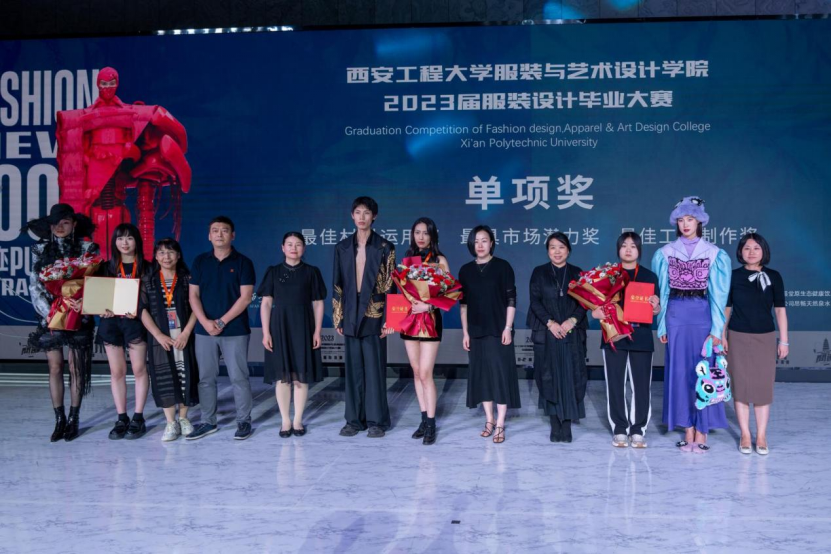 本次大赛共设置一等奖1名、二等奖2名、三等奖3名,以及最佳材料运用奖、最具市场潜力奖、最佳工艺奖3个单项奖,共9个奖项经过紧张精彩而又扣人心弦的比赛展示。最终肖风泽同学的《TA力量》荣获一等奖,王汐文同学的《机械姬》和邓媛媛同学的《千面》荣获二等奖,李文琪同学的《筑》、张一帆同学的《书为心画》和刘雅婷同学的《秦迹再现》荣获三等奖。王曦同学的《癫狂水墨》荣获最佳材料运用奖,陈德杰同学的《雕梁画栋》荣获最具市场潜力奖,陈雨馨同学的《虎头记忆》荣获最佳工艺制作奖。到会的各位领导、嘉宾、老师先后上台为获奖同学颁发证书并合影留念。