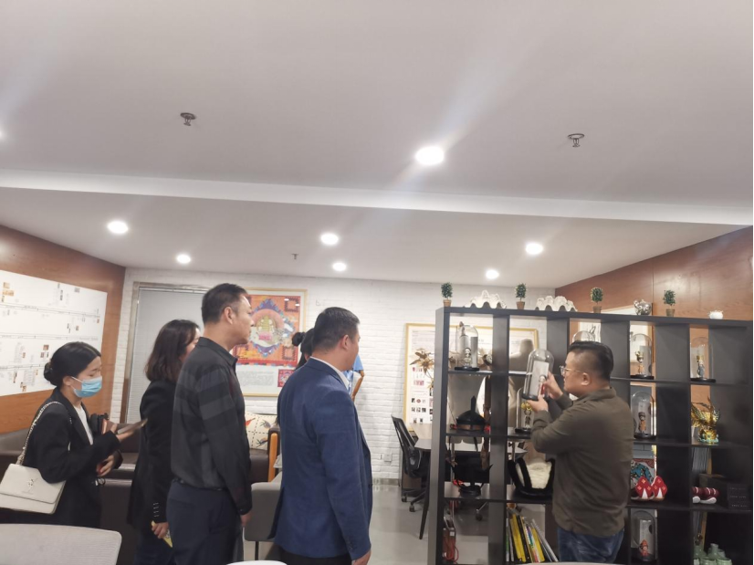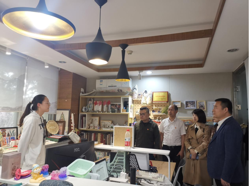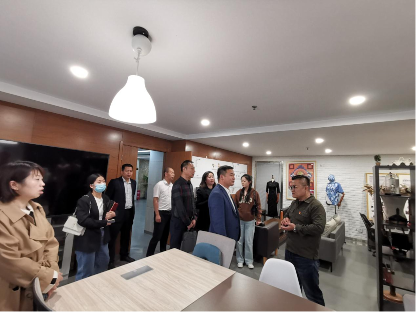 座谈结束后,赵志强、朱强一行参观了服装公司党建活动室、服装楼和公司大学科技园区。大学科技园时尚创意中心张欣刚陪同并详细介绍了大学科技园的建设、管理模式、成果转化等情况。