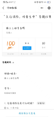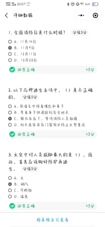 2022年11月17日,系列活动第二场“关注消防,珍爱生命”活动通过线上答题的方式开展。本次以系列活动第一场线上宣讲会为基础,结合同学们关注的消防安全知识,精心设计20道问答题。同学们踊跃参与,线上答题参与的人数达到1194人,答题正确率高达98%。通过线上答题活动,同学们进一步巩固了消防安全知识,提升了消防安全意识。