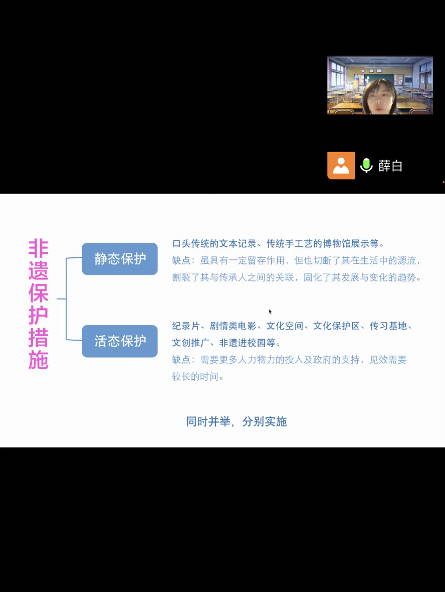 通过薛白老师的精彩分享,同学们对我国优秀的非遗文化有了更深刻的了解,对视觉传达在当代非遗活态保护中的基本原则和创意方法有了启发性的拓展,对设计表现的多样性也有了更多的认识。