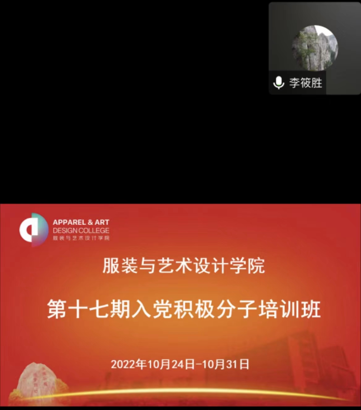 李筱胜在发言中表示,此次培训班在疫情形式严峻的情况下,采取线上授课的方式进行,大家要克服困难,认真学习。李书记并就为什么入党和如何做一名合格的老员工党员做了发言。李筱胜要求各位学员要牢记党的性质和宗旨,要刀刃向内,认真审视入党动机是否正确。他对成为一名合格党员提出三点要求:一是严格政治纪律,严守政治规矩,牢记为人民服务的宗旨,不但从组织上入党,还要从思想上入党,更要从实践中入党;二是树立服务意识,教师要主动把系里的工作做好,员工要团结同学发挥好带头宣传作用,特别是在疫情防护工作中做好表率;三是提高专业水平、专业实践和科研能力,脚踏实地服务于纺织服装行业,服务于西部开发建设。聚焦纺织服装行业特色,牢记习近平总书记在党的二十大报告中对青年的寄语和要求,勇于实践、热爱实践,坚定不移听党话、跟党走,怀抱梦想又脚踏实地,敢想敢为又善作善成,让青春绽放更为绚丽的光芒。