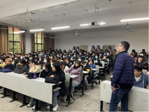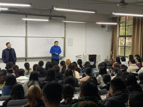 首先,每场动员会伊始,由蔡洋老师给同学们分析今年严峻的就业形势,希望大家抓住秋招的大好机会,不能有等、靠的错误思想;同时,要打开就业思路,除了找本专业相关的岗位,也可以多试试管培生和营销岗位。最后蔡老师表示公司领导和老师们会积极开展就业工作,尽力帮助毕业生做好就业服务工作,给大家做好服务。