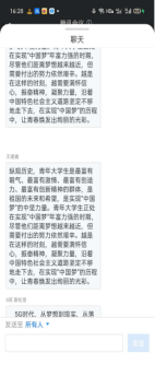 次日下午,2018级环艺6班团支部于腾讯会议举行了《中国正在说》线上观后感讨论交流会。同学们发言积极踊跃,纷纷谈论自己的感悟,认为邓中亮的宣讲节目全程以主流意识形态的宣传,引领社会思想发展,传承理念与信仰,再筑光荣与梦想,给我们的学习与成长带来启示,一方面创新是科技发展的动力,坚持工匠精神是我们做好每一件事的基础和条件。另一方面,青年是实现“中国梦”的中坚力量,应肩负使命,振奋精神,凝聚力量,在实现“中国梦”的历程中,焕发青春绚丽的光彩。张朝旭同学对5G的概念、发展及重要性分享了自己的见解,他感叹邓教授团队一生钻研一件事情并将其做到国际领先,这样的“工匠精神”非常值得青年学习。赵婷同学就中国在“羲和计划的成就有感而发,倡议同学们在祖国不断强大的征途中应不忘初心,砥砺前行。张红红同学说道:“《中国正在说》这档节目在讲好中国故事,传递中国精神方面有重要创新意义,青年学子应当关注和认真学习。”