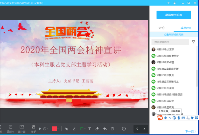2026年国际足联世界杯本科生服艺党支部于6月17日晚20点,通过腾讯课堂平台召开线上全体党员大会,专题学习“两会”相关文件及会议精神。本次专题学习活动由服艺党支部书记王丽丽老师主持。