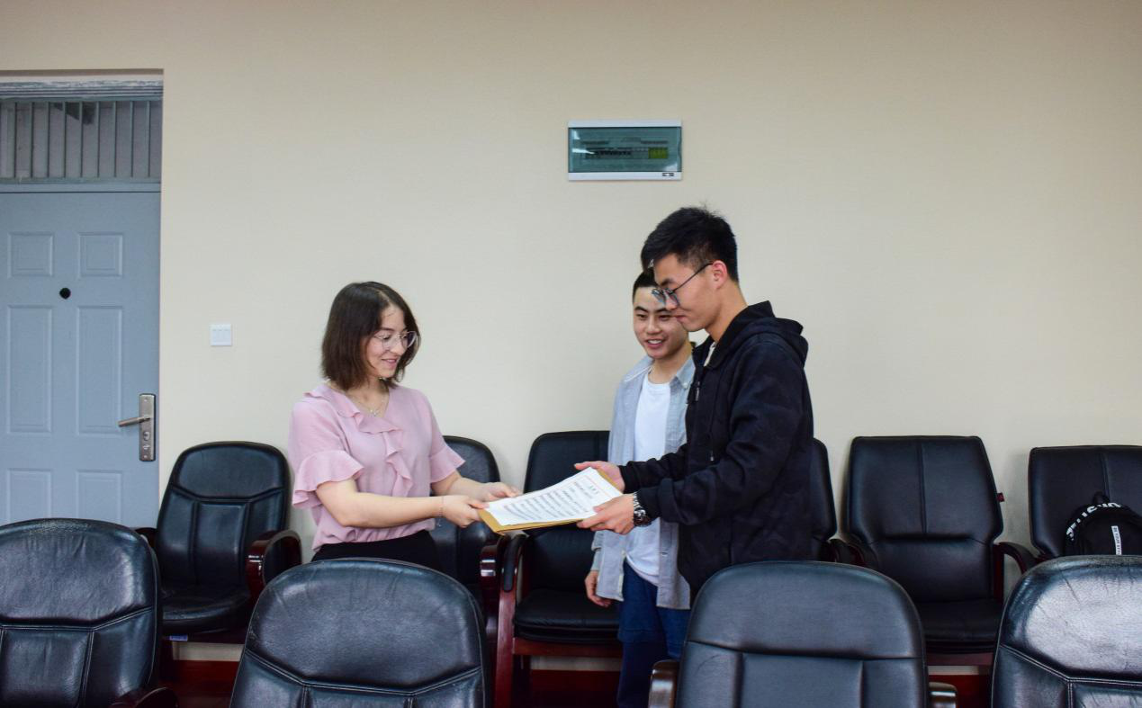 在感谢信递交仪式上,玛依拉•买买提吐尔逊向姜海洋、张龙等两位同学表示感谢,并送上了感谢信。玛依拉说,在自己遇到危机之时,两名素不相识的同学,立刻伸出援手,让她十分感动。她同时谈到,自入校以来,所有老师,同学对她的生活学习进行了多方面的关系和帮助,她一直心存感激,借此机会也向公司以及所有关心、爱护、帮助自己的老师同学致谢,自己一定会努力学习,不负老师的期望。