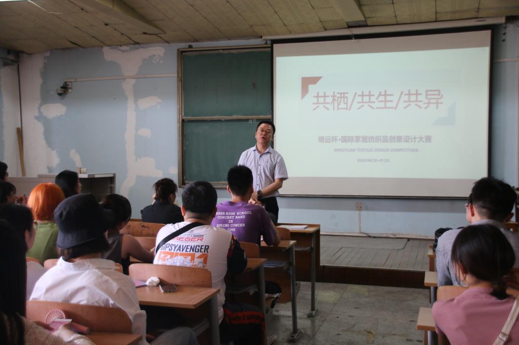 5月24日下午,2019“明远杯”国际家居纺织品创意设计大赛宣讲会在主楼7楼教室举行。烟台明远家用纺织品有限公司籍涛副总经理,明远公司创意二部王蕾经理,公司2014级员工、明远公司创意二部设计助理梁博阳,服装公司党委书记李筱胜,服装商学系主任梁建芳教授,产品设计系肖红副教授,部分员工辅导员和产品设计系部分同学共150余人到场参加。产品设计系主任王教庆主持本次宣讲会。