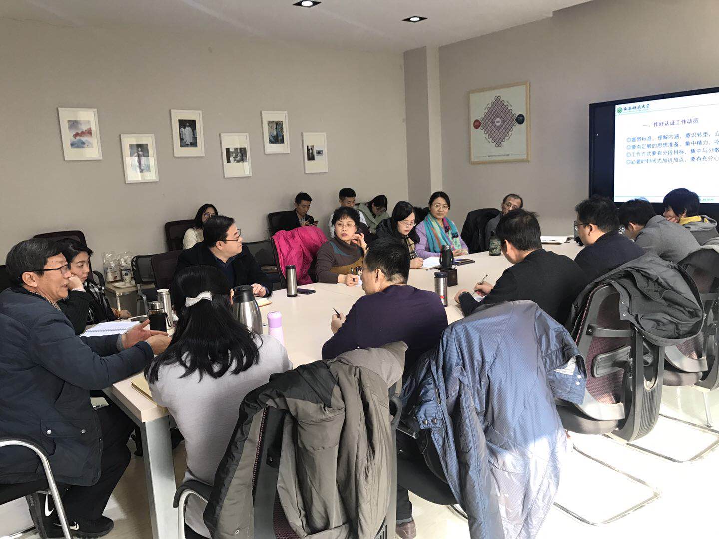 上海工程技术大学李艳梅教授正在进行自评报告撰写讲解