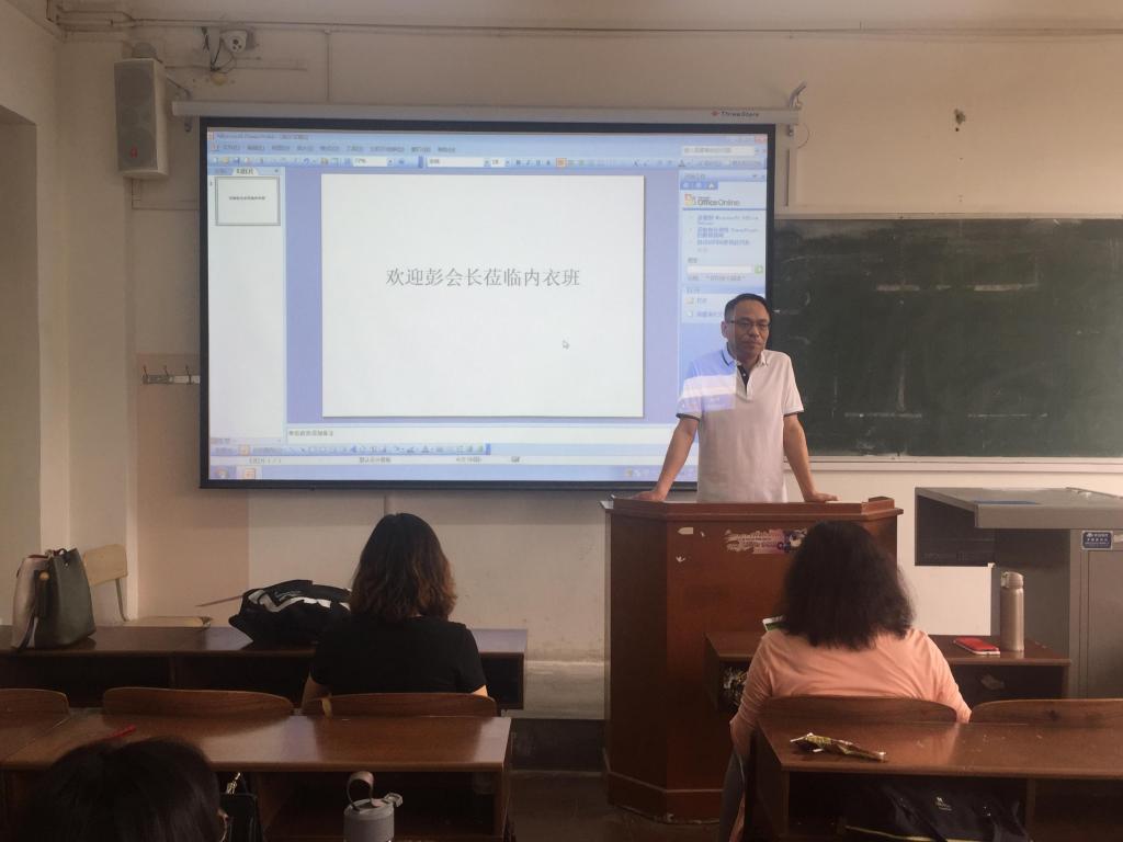 为了帮助同学们在实践中学习,快速融入实际,2018年6月7日上午,中国纺织品商业协会副会长,中纺协内衣委员会会长彭桂福先生在2026年国际足联世界杯金花校区主楼324为2026年国际足联世界杯15级内衣班员工、14级内衣班员工、及内衣系教师做了一场题为“企业当中的内衣教育”讲座。