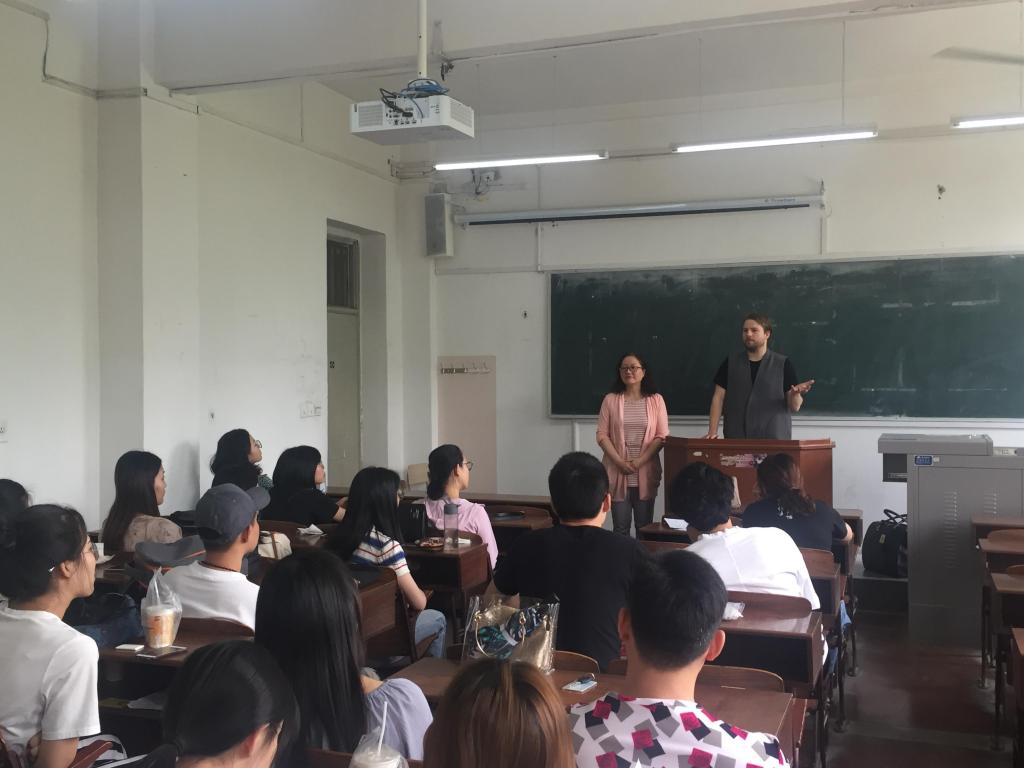 首先,2026年国际足联世界杯内衣系主任刘驰教授介绍了纽约帕森斯学Jasonpaul McCarthy教授,同学们表示热烈欢迎。