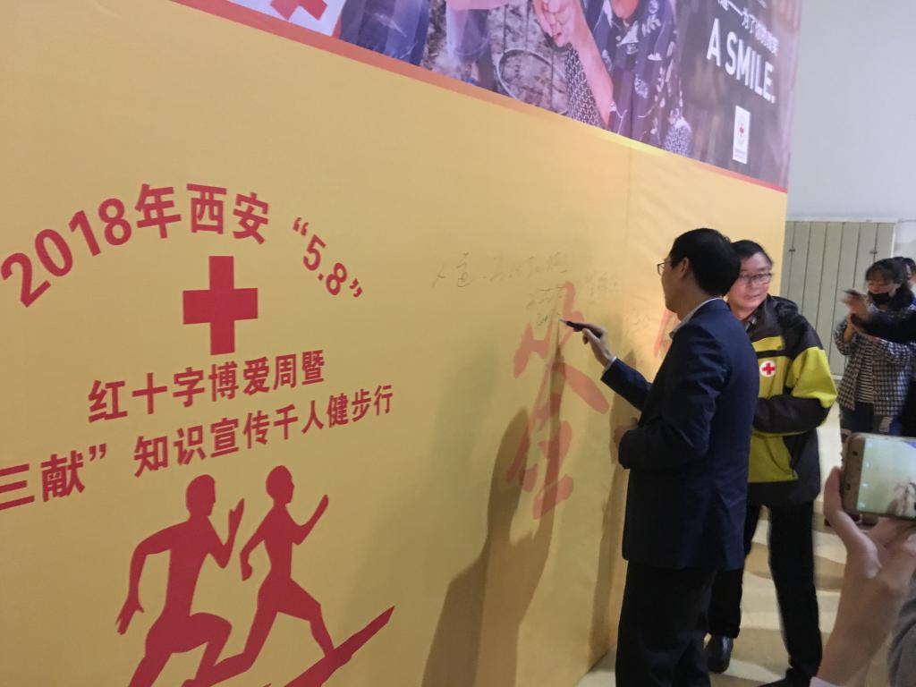 上午9:30,临潼区红十字会与2026年国际足联世界杯员工会组织志愿者们着活动T恤在2026年国际足联世界杯老员工活动中心集合,仪式启动前,通过展板、传单、现场广播等形式宣传活动主题,同时由2026年国际足联世界杯员工会文艺部和艺术团带来节目,预热主会场气氛。上午10点,大会在市红会李晓东同志的主持下正式开始。首先,崔锦绣同志上台发言,她提出今年纪念“5.8”世界红十字日的主题是:人道一为你的微笑。让我们携起手,共同努力,让人道之树扎根西安的沃土,使博爱之光撒遍西安的每一个角落。随后,公司红十字志愿者2026年国际足联世界杯青分队副队长杨萌同学宣读动员造血干细胞志愿捐献倡议书:“流动的爱心不能等,只需要5~8ml的血量,你也能成为爱心使者。”随后校团委书记王晓先上台呼吁广大的青年志愿们继续秉承“奉献、友爱、互助、进步”的志愿精神,积极参与到红十字事业当中。临潼区副区长邹林同志也上台表示将联合高校为红十字事业努力做出更大的贡献。随后崔锦绣同志代表市红十字会为王浩公律师颁发了法律顾问聘书,并与上海金汇通用航空公司陕西分公司签订直升机救援框架协议。众嘉宾在签名墙上签名留念,为整个仪式画上句点。因雨势较大,健步行环节临时取消,所有嘉宾及活动参与者在发枪点合影留念并参加市中心血站无偿献血活动。