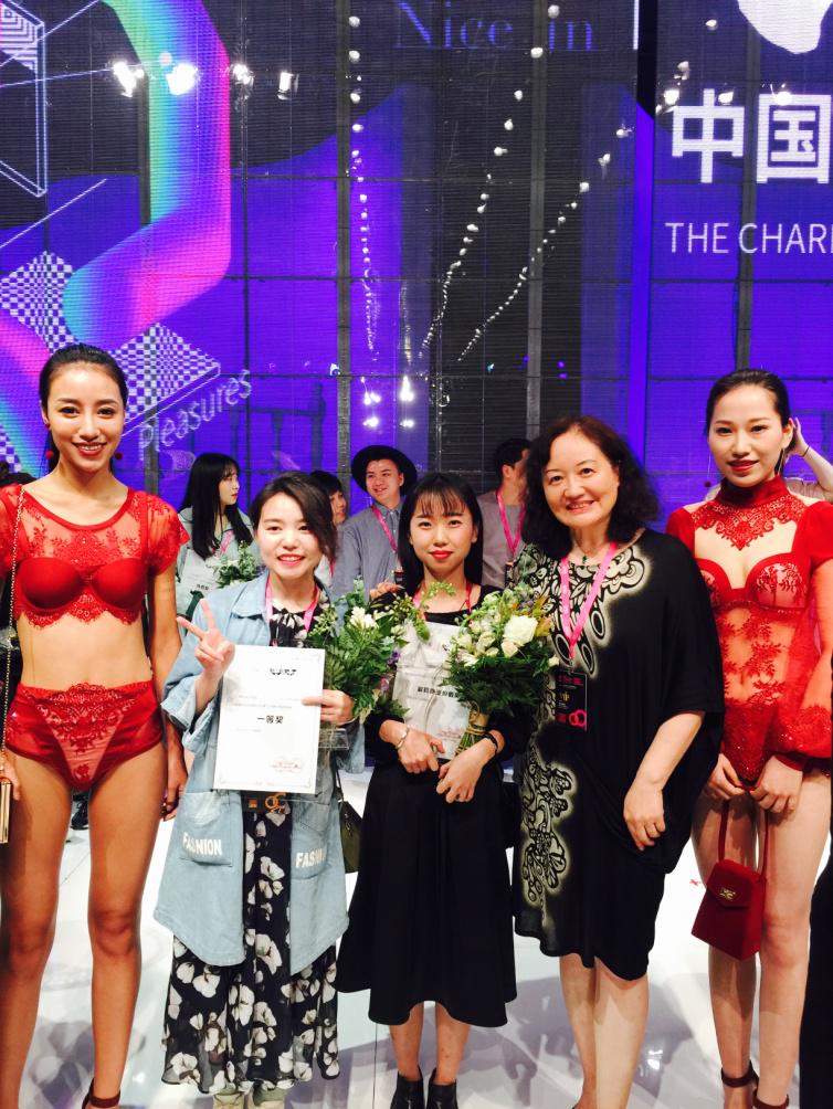 内衣系主任刘驰教授向一等奖获奖同学祝贺