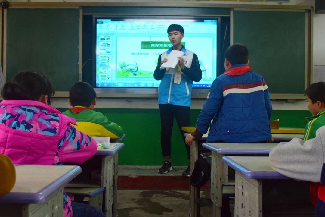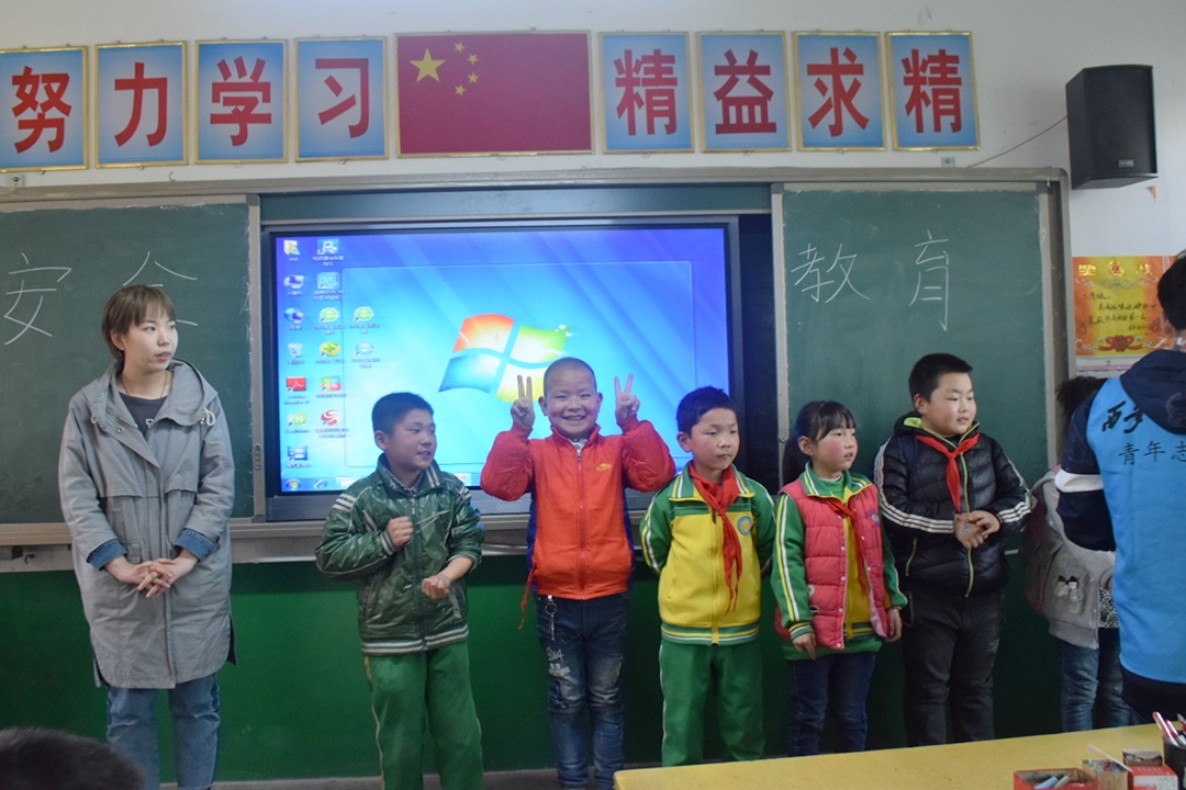 下午上课铃声准时响起,青分队志愿者分成两队,由队员韩晓朋与王文杰主讲,其他队员进行辅助,同时为三、四两个年级的小员工进行授课。志愿者主要为孩子们介绍了交通安全问题、校园安全问题、食品安全问题、防溺水问题,以及维护自身安全的小常识。虽然介绍的都是生活中的小常识,但是越微小的事情越容易被孩子们忽略,养成良好的行为习惯是最有效的保护途径。志愿者通过充满童趣的ppt课件以及诙谐幽默的上课方式赢得了孩子们的喜爱。对于志愿者们的提问,孩子们迅速举手做出反应,展现着他们这个年纪特有的蓬勃朝气与天真可爱。45分钟的课程时间十分短暂,原先设定的游戏环节由于时间不够并没有进行,留下了一个遗憾,但通过大家的努力与孩子们的积极配合,这次课程依旧完成的十分精彩。