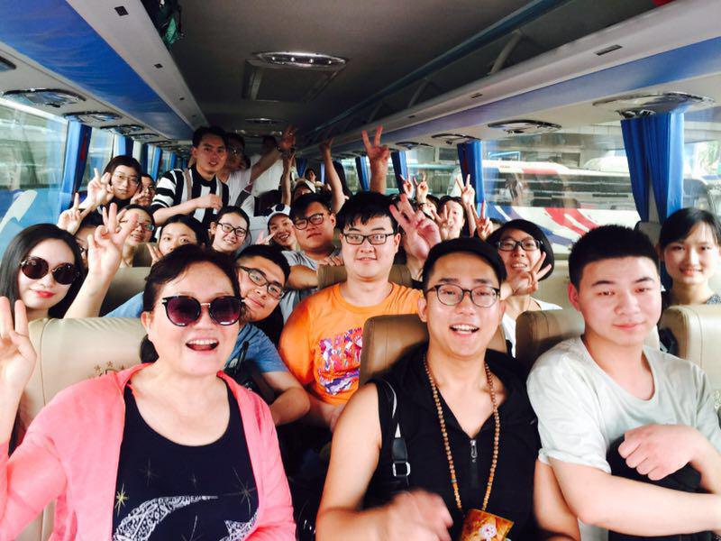 15个小时的火车,我们从西安到了济南,刚下车,我们就看见了安莉芳的姐姐来接我们。大家坐上安莉芳集团接我们的大巴去往山东工业园,在车上内衣班的员工多才多艺,能歌善舞,气氛十分愉悦。