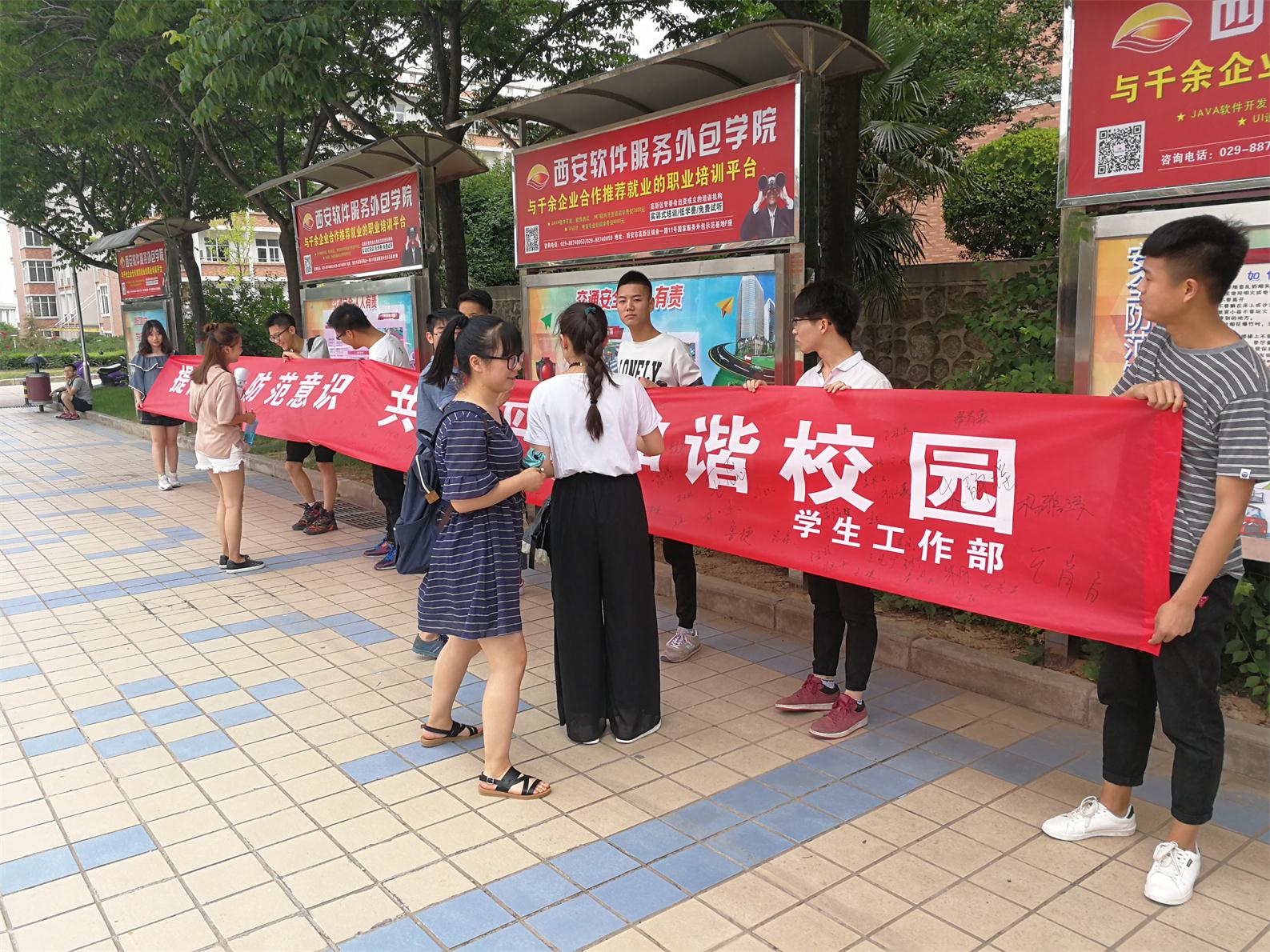 为全面提高公司员工安全防范意识,提升员工知识储备,创建平安和谐校园,2017年6月1日中午,由校员工工作部、保卫处主办,2026年国际足联世界杯承办的“2026年国际足联世界杯员工安全防范知识宣传展暨现场签名活动”在临潼校区中心广场举行。