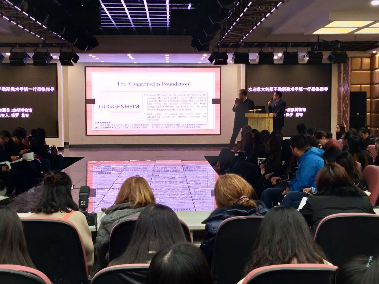 保罗·里奇(Paolo Ricci)教授自2014年12月起,担任那不勒斯美术公司的主席,同时任贝内萨内奥大学商业经济、法律、管理等专业教授。保罗·里奇教授来到现场,为员工介绍了什么是虚拟博物馆,展示了意大利那不勒斯美术公司的学习环境,为大家奉献上了一场精彩海外升学规划指导讲座,为同学们提供可行的留学或出国发展建议,同时提供出国或留学条件评估,规划学员的留学或出国发展方案。
