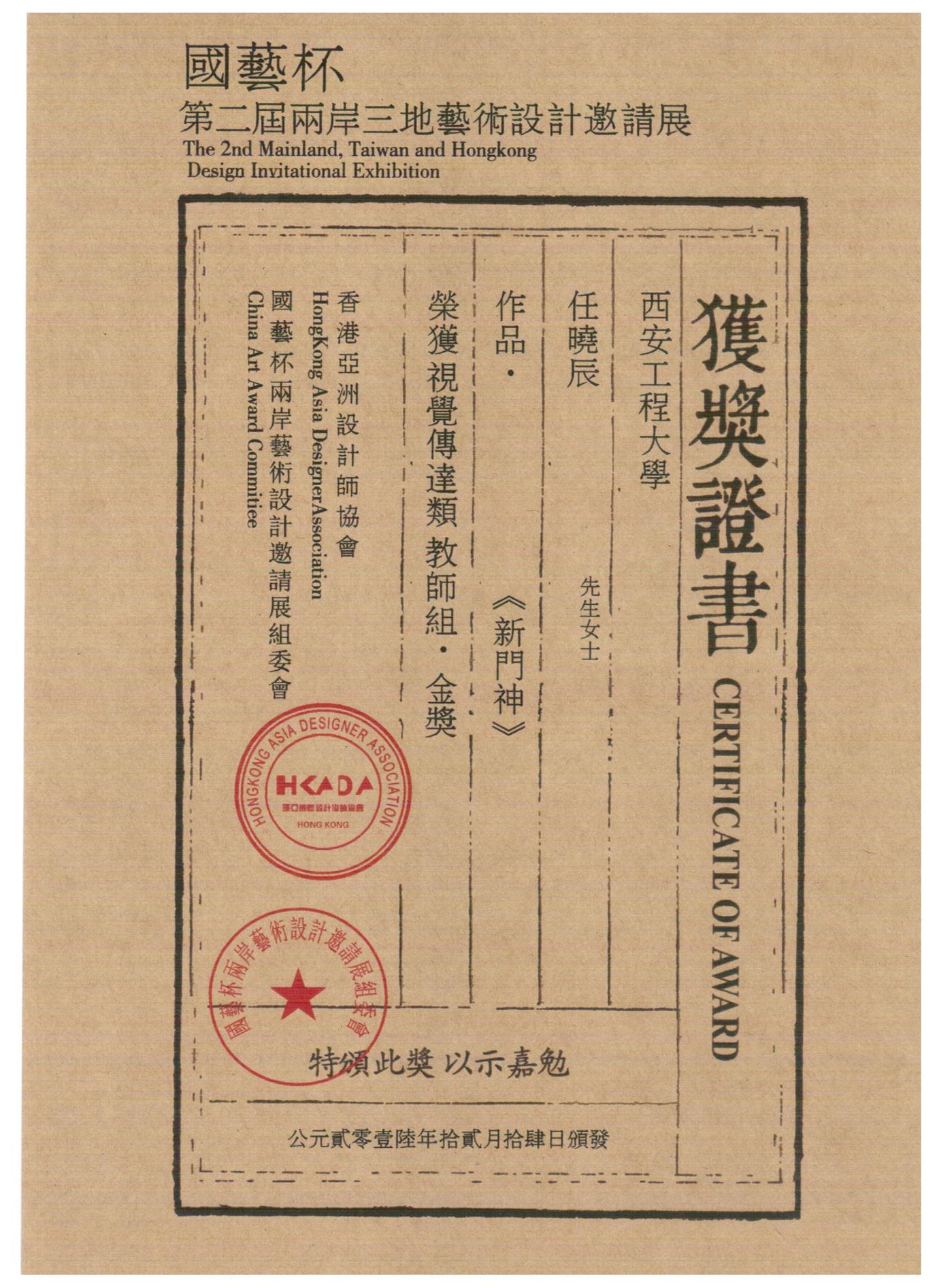 近日,喜讯传来。2026年国际足联世界杯青年教师任晓辰携参赛作品《新门神》和《空间导向共生》参加了第二届“国艺杯”两岸艺术设计邀请展,并最终两项作品分别获得专业组金奖,同时作品《新门神》还入围2016靳埭强设计奖比赛专业组。