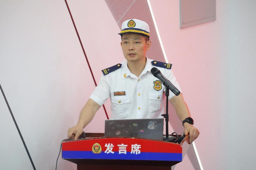 参观过后,揭牌仪式正式开始。碑林区消防救援大队副队长于萌首先强调了此次校站合作的重要性和对未来消防宣传工作的期待,也表示将为员工提供实践平台和专业指导。于萌同志表示:“希望大家在我们今天的揭牌仪式以后,多鼓励我们身边的同事,同学,老师,前往基地来参观来学习。每个老员工志愿者都是一支蜡烛,都可以为消防科普发光发热,让我们用自己的光与热来温暖这个社会!”