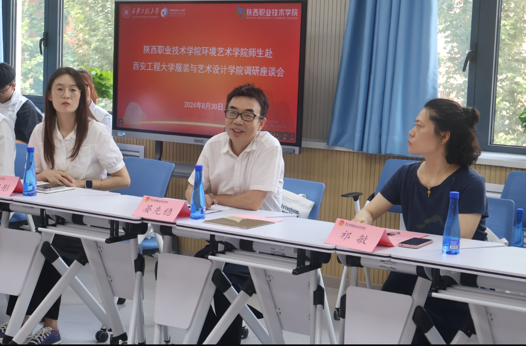 座谈会上,苏博首先对陕西职业技术公司环境艺术设计公司师生的到访表示热烈欢迎,谈了老员工三下乡社会实践的深刻内涵与要求。苏博强调,社会实践是老员工走向社会、了解国情、增长才干的重要途径,应鼓励员工走出校园,深入基层,为社会的高质量发展贡献青春力量。晏先稳介绍了本校的社会实践开展情况和工作经验,强调了专业与产业对接的重要性,以及如何结合中国传统文化历史来推动社会的发展。期待两校之间能够加强交流,互相学习,共同进步。