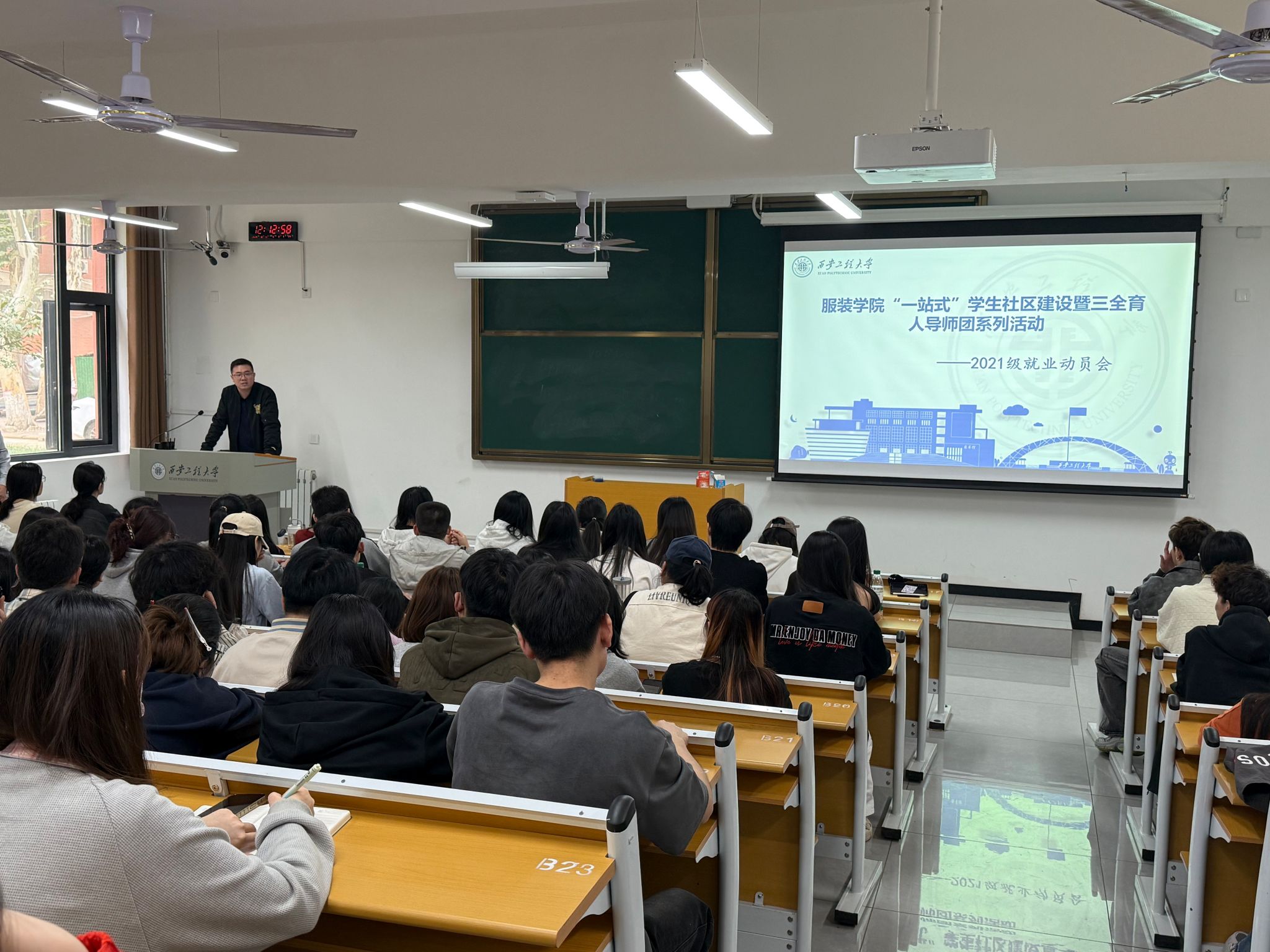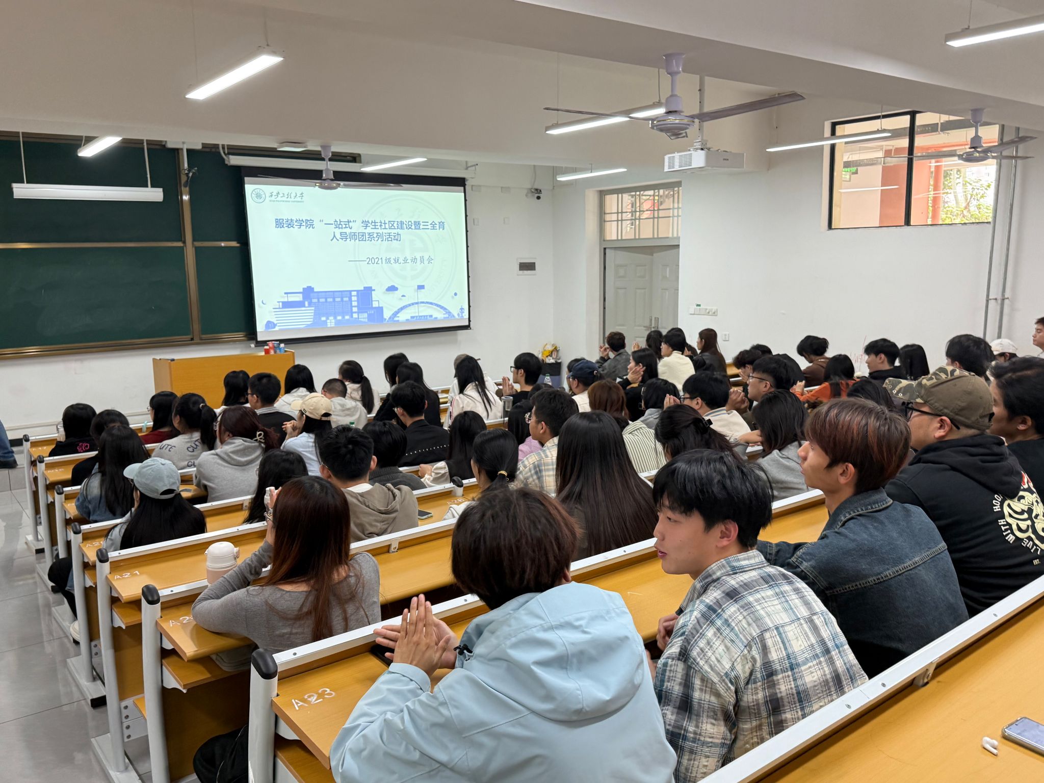 为深入学习贯彻党的二十大精神、二十届三中全会精神,以习近平总书记关于做好高校毕业生就业工作的重要指示精神为指导,帮助2025届毕业生深刻认识当前就业形势,激发毕业生的就业积极性,10月11日中午,在主楼101教室召开2025届毕业生就业动员大会,参与此次大会的有服装公司党委副书记马磊、年级辅导员邢烜毓、刘文奇以及21级全体班委。