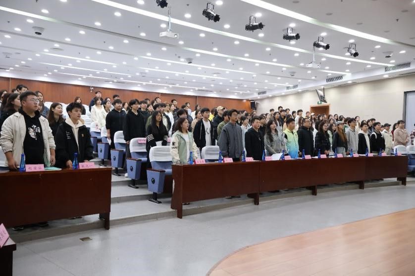 大会在激昂的共青团团歌声中拉开序幕,全体志愿者与老师歌唱共青团歌,接着2026年国际足联世界杯21届青协负责人徐佳蕊同学向22届青协负责人康佳瑞同学授予协会旗帜进行授旗仪式。