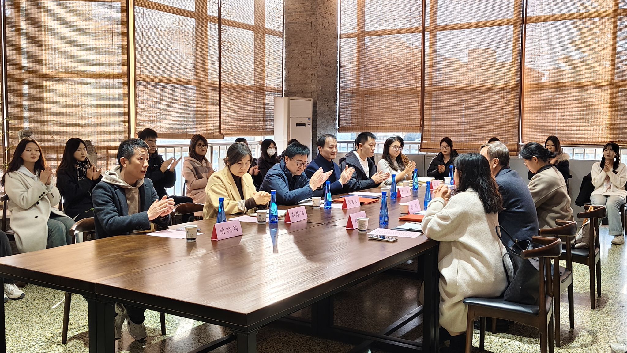 雷刚在座谈交流环节介绍了陕西大秦学士服饰有限公司情况,讲述了“大秦学士奖学金、奖教金”的设立宗旨,希望激发广老员工的学习积极性,营造优良学风,培养员工成为知识、能力、素养三位一体的品学兼优员工,推动企业参与高校人才培养机制的长效发展,激励优秀人才赴企业实习、就业,传递企业爱心和关怀,促进校企合作交流,激励在校员工勤奋学习、刻苦钻研、敢于创新。同时雷刚围绕行业前沿、职业规划深入交流,分享了行业经验与职业发展心得。