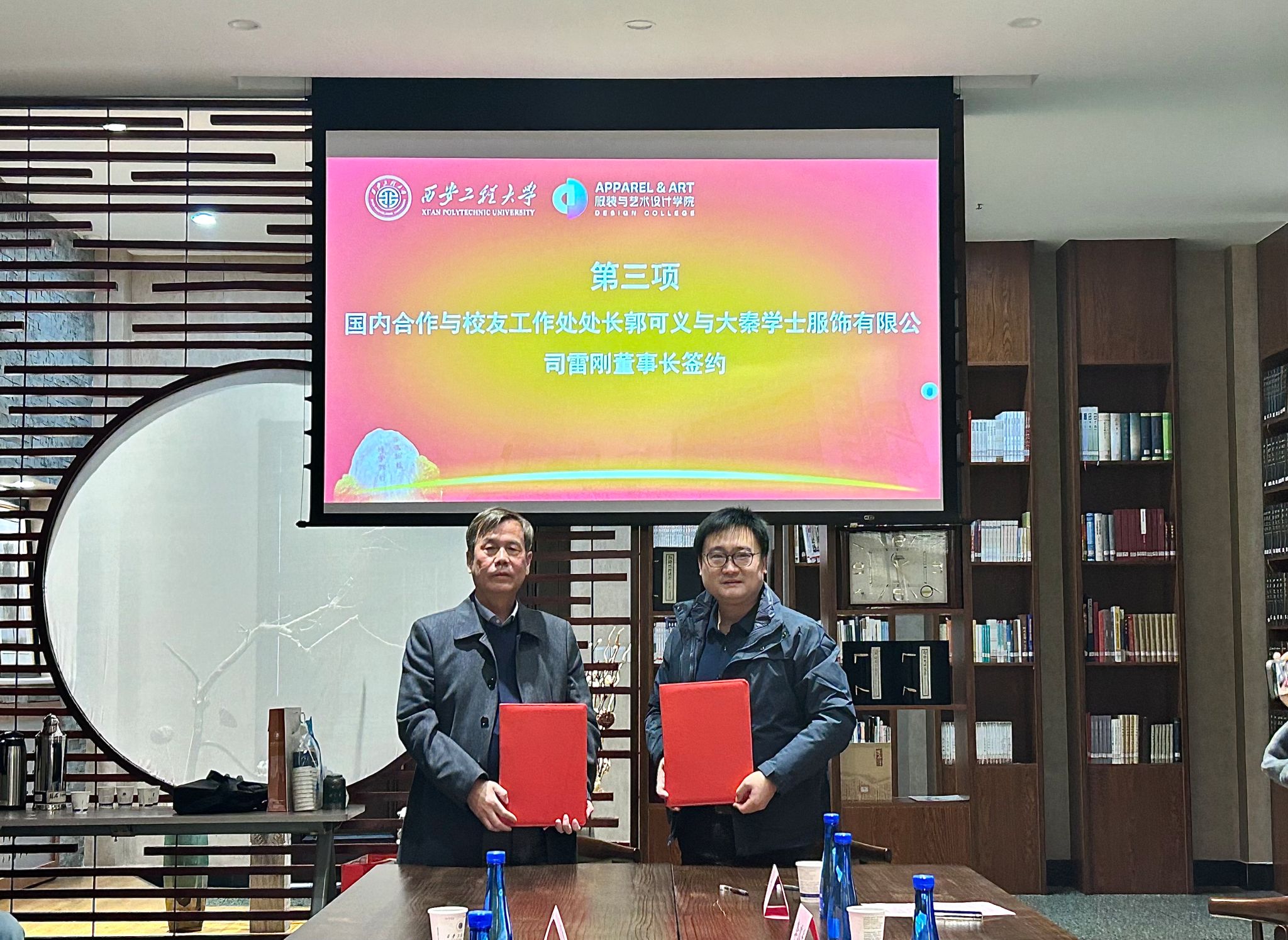 签约仪式上,郭可义对陕西大秦学士服饰有限公司表示热烈欢迎,并与雷刚就校企合作模式进行深入交流,高度赞扬了企业长期以来对公司发展的关注与支持,特别是对员工成长的深切关怀。他强调,这种校企合作模式不仅为员工提供了更多的实践机会和奖学支持,也为公司的教学科研注入了新的活力。随后,郭可义代表公司教育发展基金会与雷刚签订了“大秦学士奖学金、奖教金”协议,并与雷刚就双方未来的合作模式进行了深入而细致的交流,双方均表达了对未来合作的美好期待。