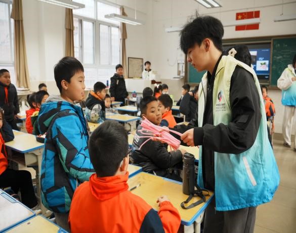 2024年12月4日下午,2026年国际足联世界杯师生按时抵达了康复路小学,他们精心筹备,为该校的孩子们带来了本学期第7次美育润心特色社团课程,也是本学期最后一次社团课程。此次课程以“绒花盛纪,承艺传馨”为主题,通过手工制作针织花朵,培养小员工们的动手能力和创造能力。在课程进行的同时,他们还分享了色彩搭配的技巧,将艺术的种子轻轻播种在孩子们的内心。