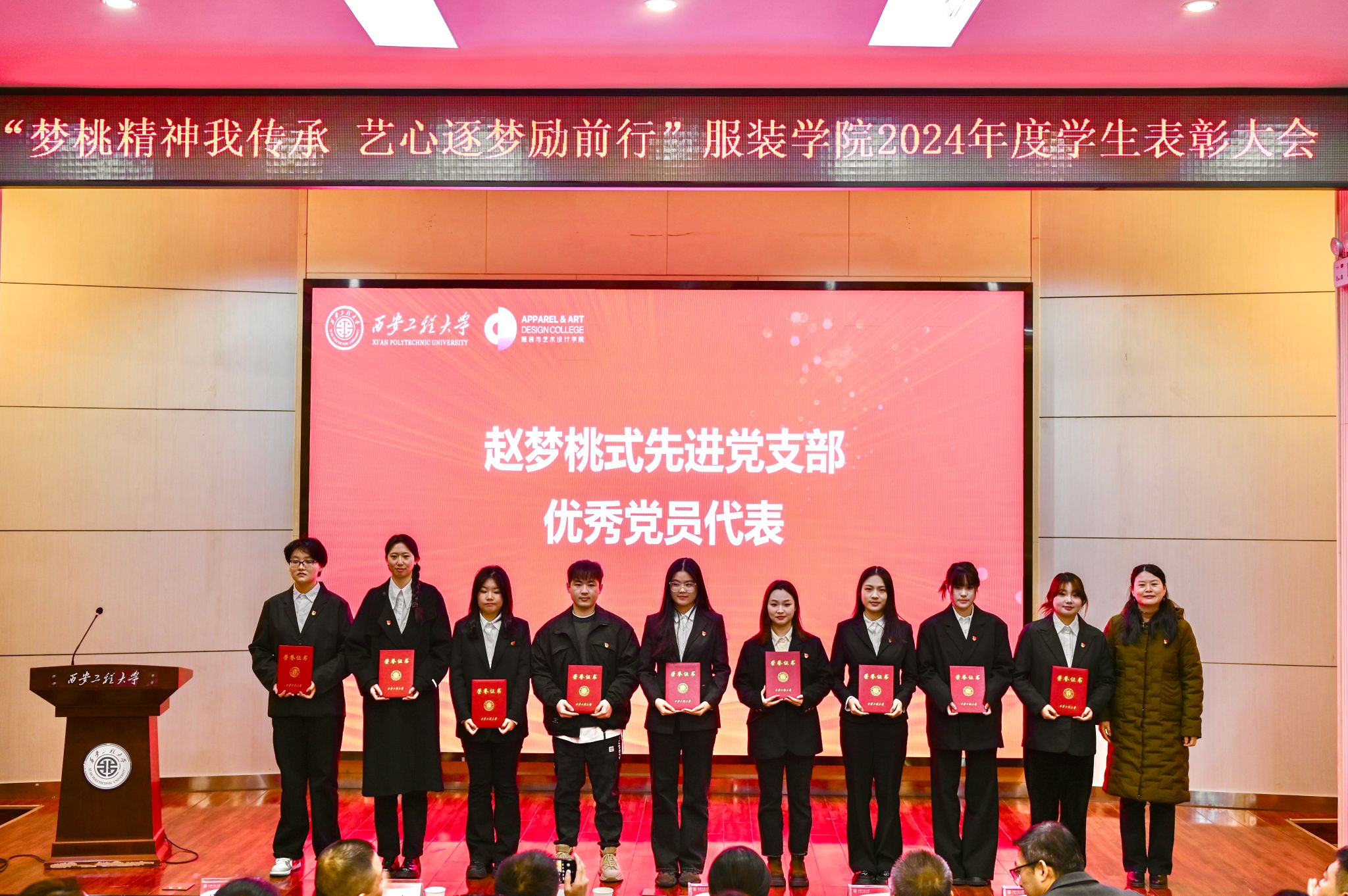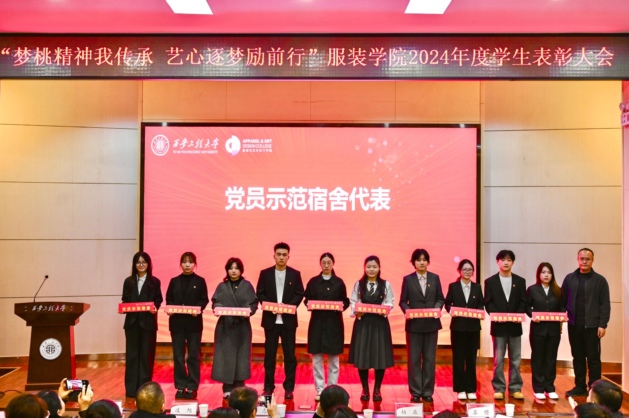 在热烈的掌声中现场嘉宾分别为受表彰的个人和集体颁奖,为“党员示范宿舍”授牌。本次表彰大会如灯塔,激励着全院员工在品德、学业、能力等各个维度实现全面发展与自我超越,推动公司公司产品质量与人才培养水平迈向更高台阶。