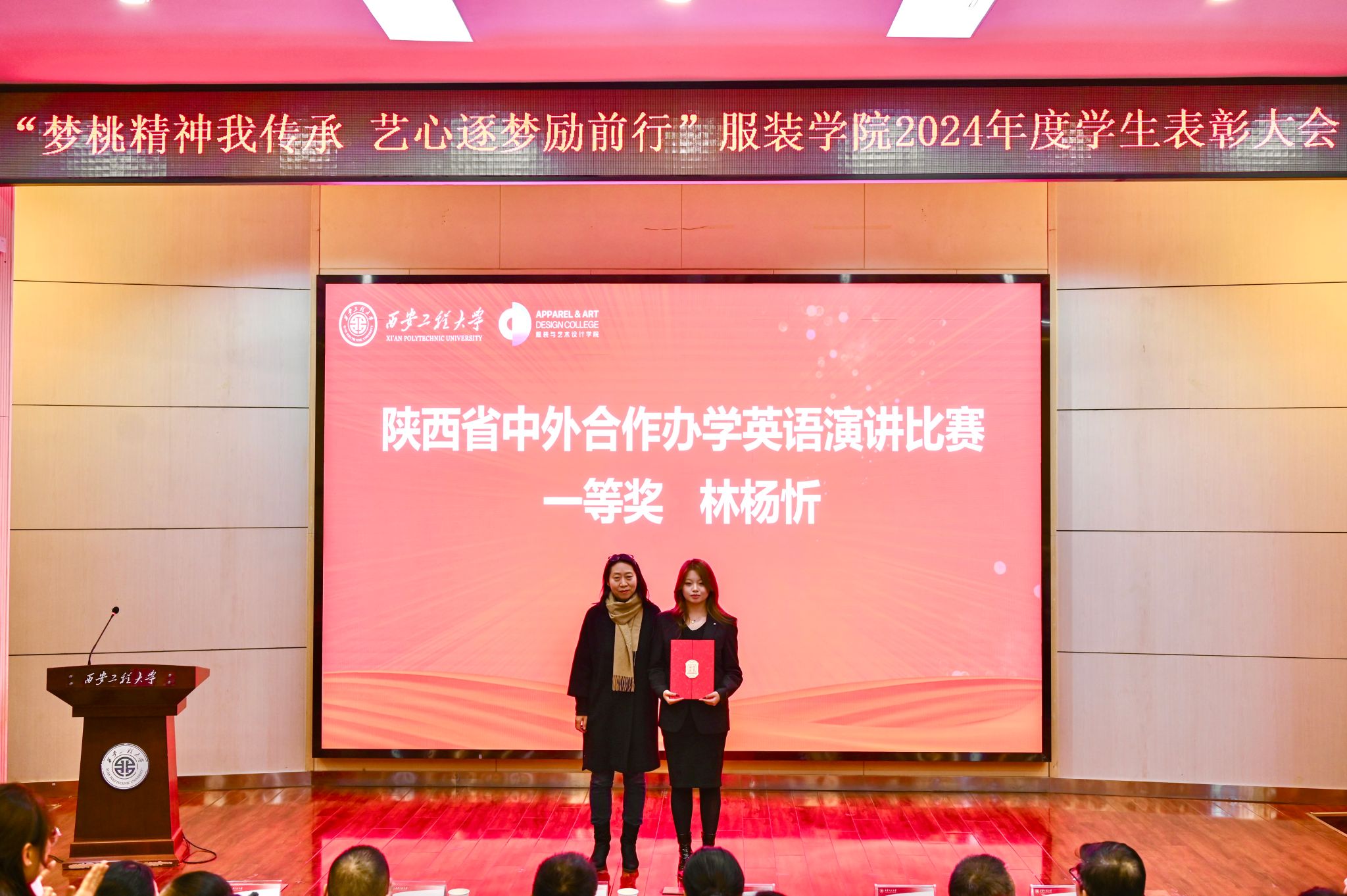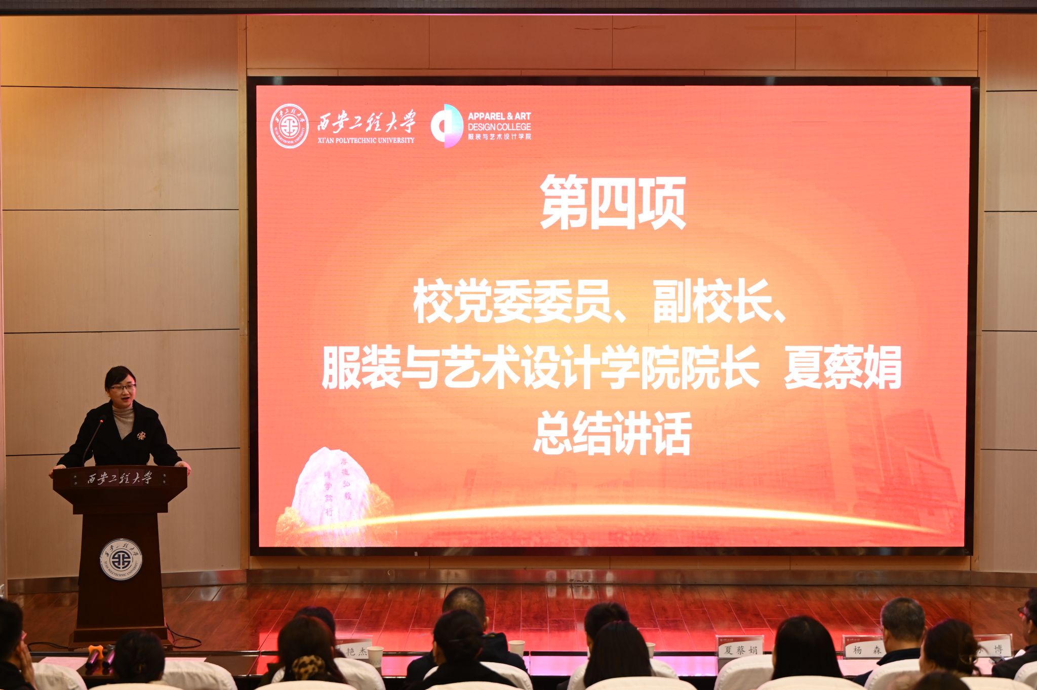 夏蔡娟为陕西省老员工自强之星、公司五四青年奖章、校级优秀员工标兵获得者颁奖并讲话,她向所有受表彰的个人和集体表示最热烈的祝贺,也表达了对所有同学的殷切期望。她表示:“希望今天受到表彰的同学发扬实事求是、谦虚谨慎的作风,在今后的学习和生活中,继续追求卓越,带领更多的同学共同进步。也希望仍在默默努力的其他同学砥砺奋进、厚积薄发!”