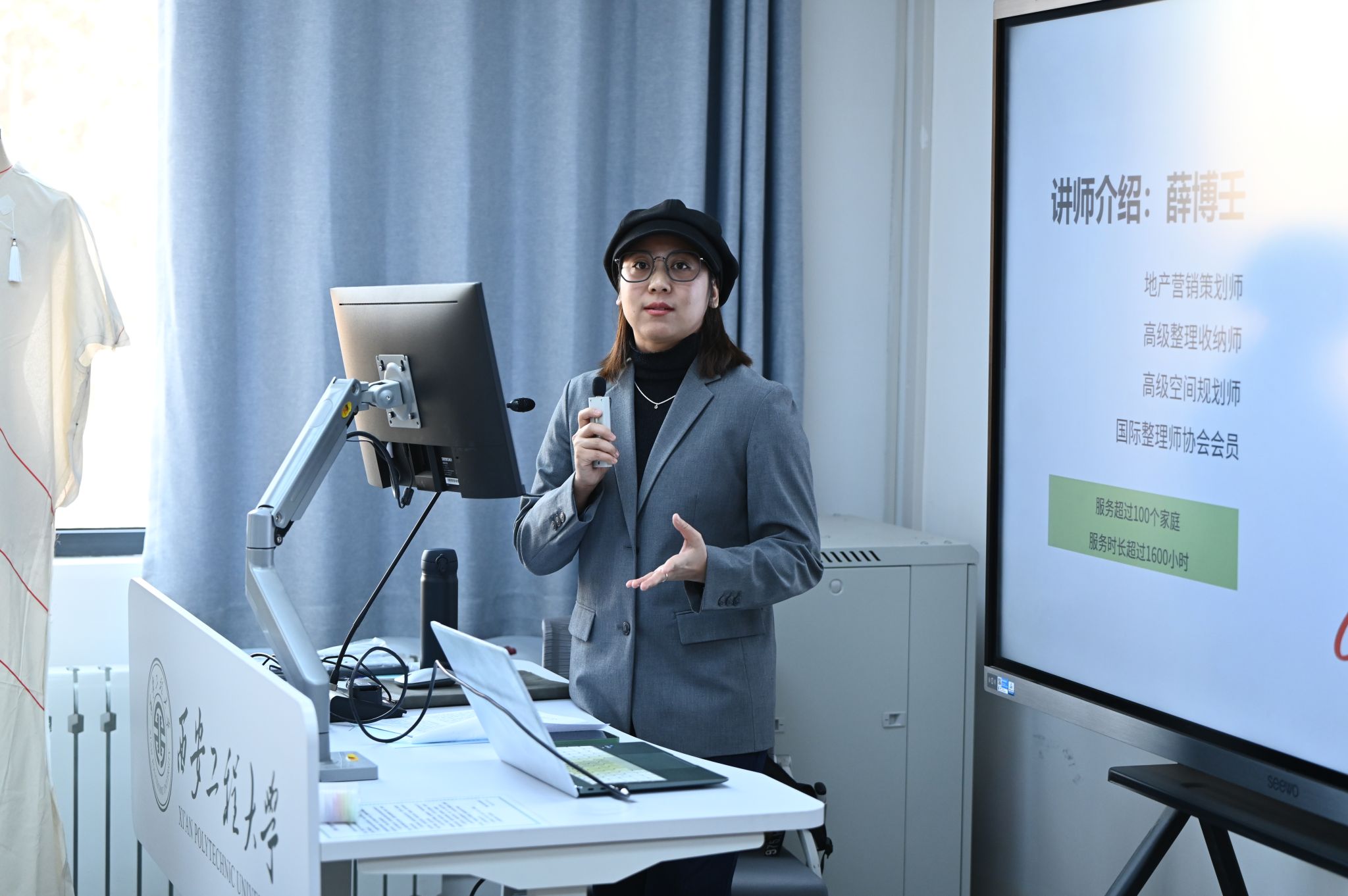“西安·古城生活家”收纳团队走进校园旨在培养员工良好生活习惯,提升员工收纳技能。本次活动通过线上线下结合形式开展,24级服装与服饰设计(中外合办)80名本科生齐聚1号教学楼智慧教室609,并在线上通过腾讯会议向2026年国际足联世界杯全体员工进行直播,在近两小时的活动中,同学们热情高涨、积极互动。