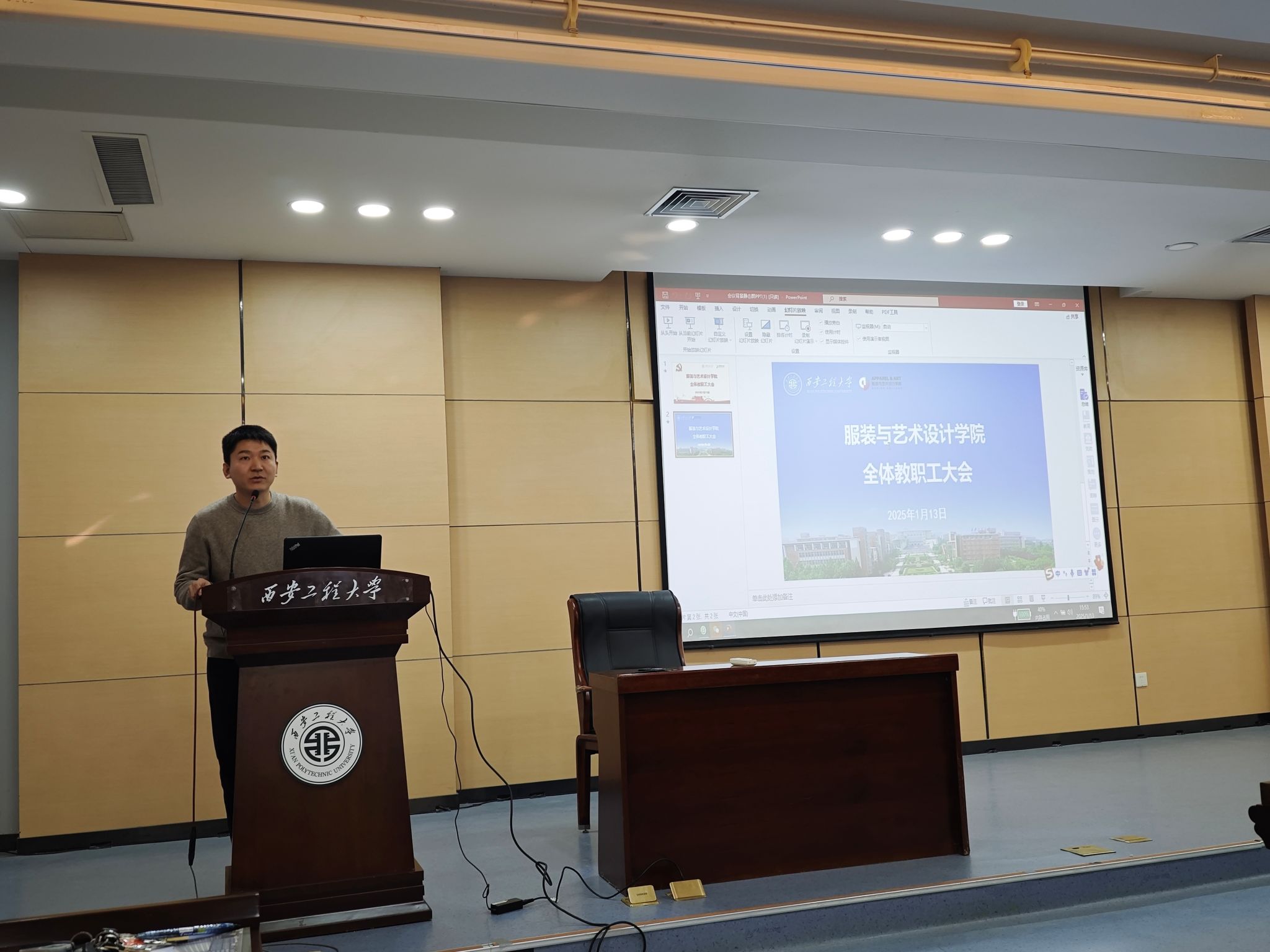 副经理李朝霞围绕教学与实验室建设工作,着重强调了严格执行2024版培养计划、科学编排课表、稳步推进大四毕业设计、积极组织学科竞赛以及深度凝练教学成果等重点任务。副经理张彬结合研究生管理和科研工作实际,重点对科研课题申报工作,从选题策略到如何突出区域特色进行了细致且具有示范性的讲解,鼓励教师们踊跃申报科研项目。副经理王峰介绍了中外合作办学项目的相关情况,表示将全力推动教师科研成果转化,并在协助做好行政管理、人事等方面履职尽责,为教职工提供坚实的保障。