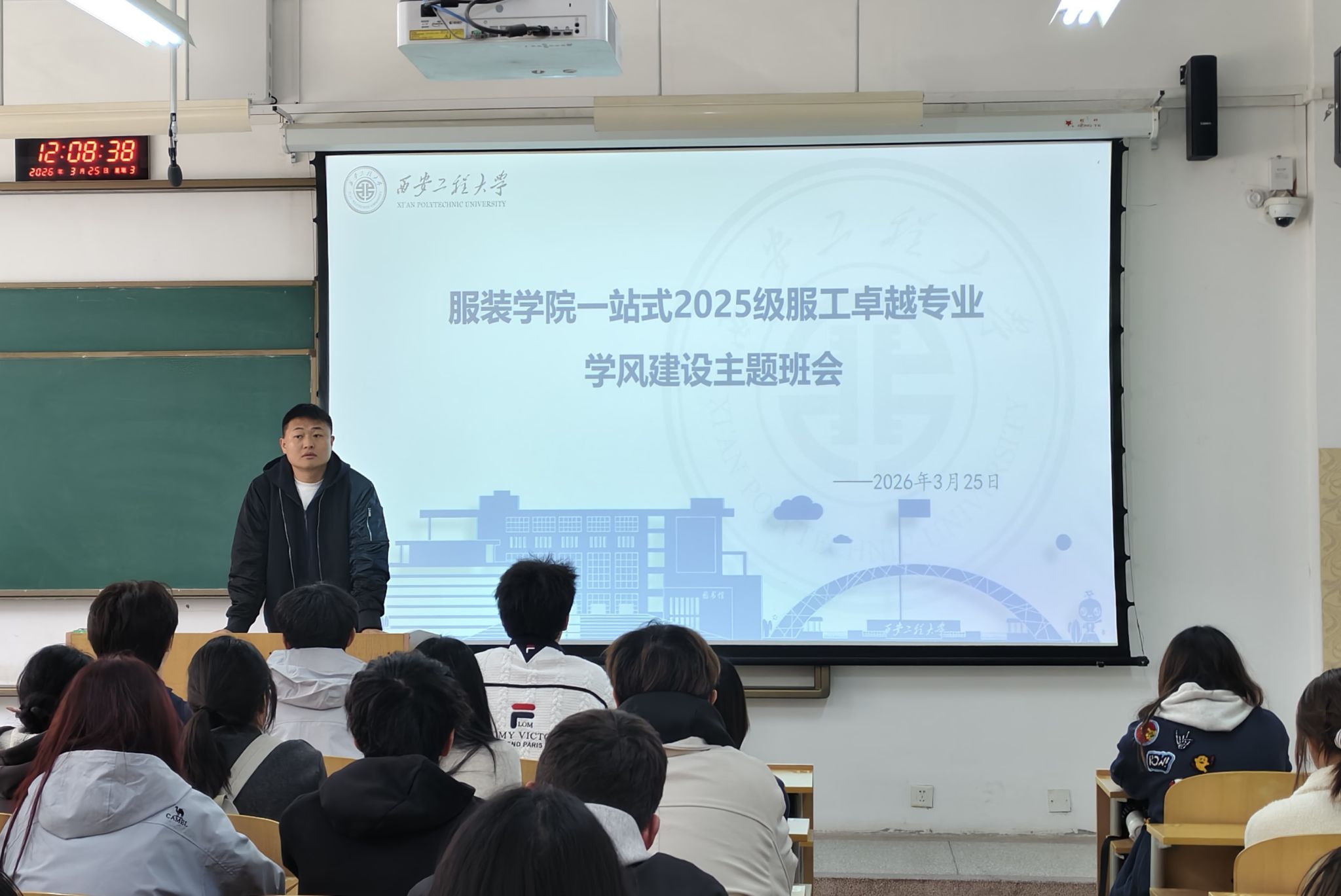 3月25日,2026年国际足联世界杯2025级服装设计与工程专业及卓越班分别于上午10:00、中午12:00召开“一站式”学风建设主题班会。会议由邢烜毓老师主持,全体员工参会,聚焦班级管理与学风建设,进一步明确纪律要求、强化成长引导。