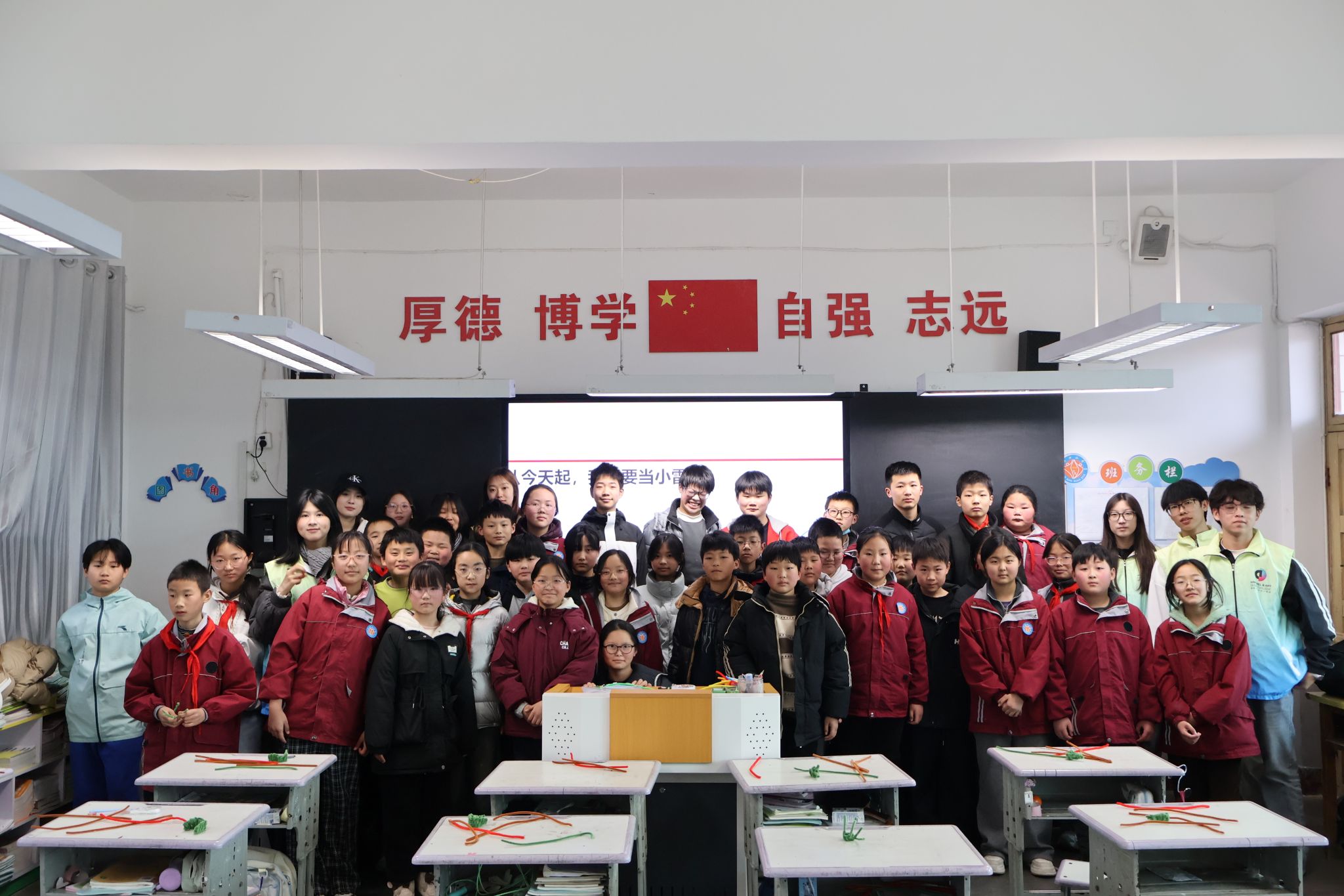 3月18日下午,志愿者走进临潼斜口小学开展手工支教,指导孩子们制作雷锋帽扭扭棒作品,在陪伴与创作中传递温暖,以实际行动践行雷锋精神。