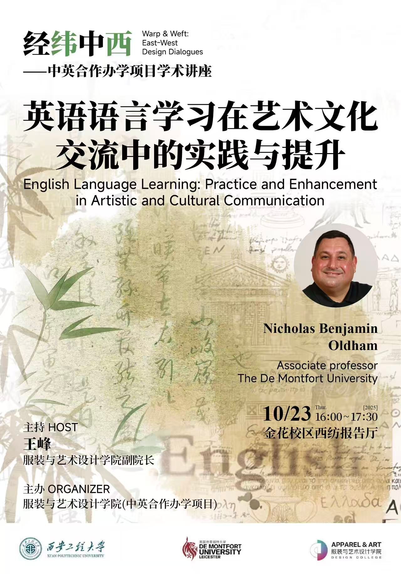 内容简介:讲座聚焦英语学习与艺术文化交流的融合。将深入探讨如何运用英语深化跨文化理解,并同步提升艺术鉴赏力与语言表达力。在艺术交流中,应该如何用英语精准传达思想?本次讲座带你超越词汇语法,构建跨文化思维。