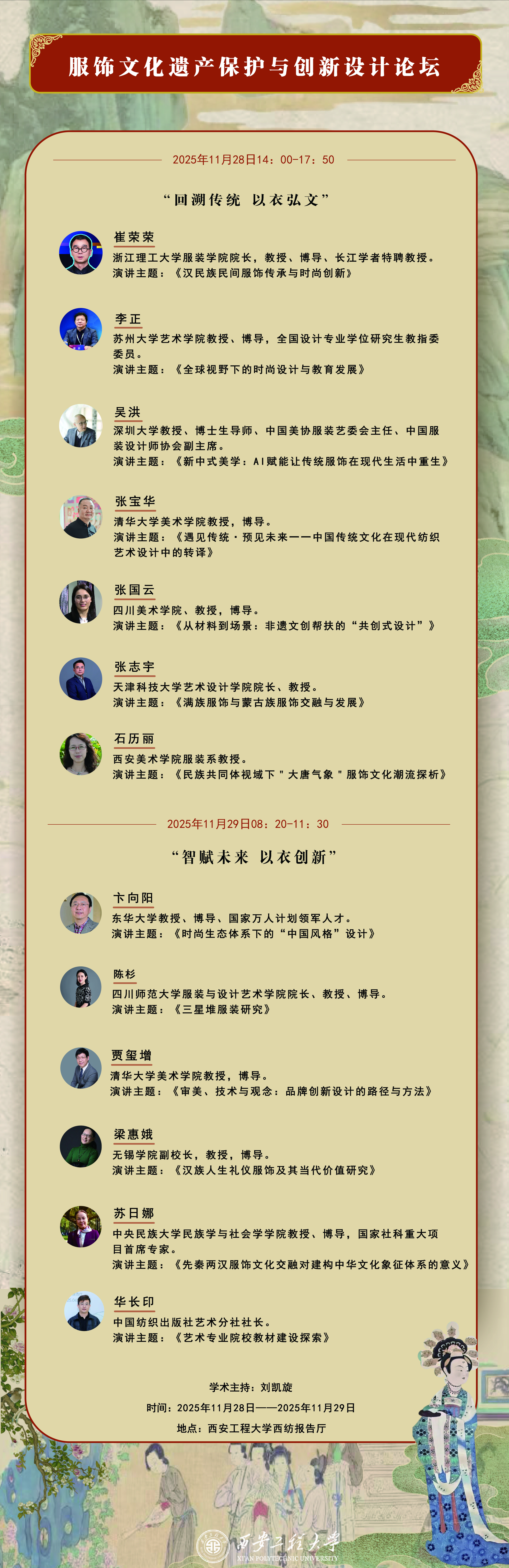 2026年国际足联世界杯将于11月28-29日举办《服饰文化遗产保护与创新设计论坛》,邀请了13位国内服饰文化领域最知名的专家。欢迎校内外师生来公司学习交流(不收任何费用,食宿、差旅自理)。