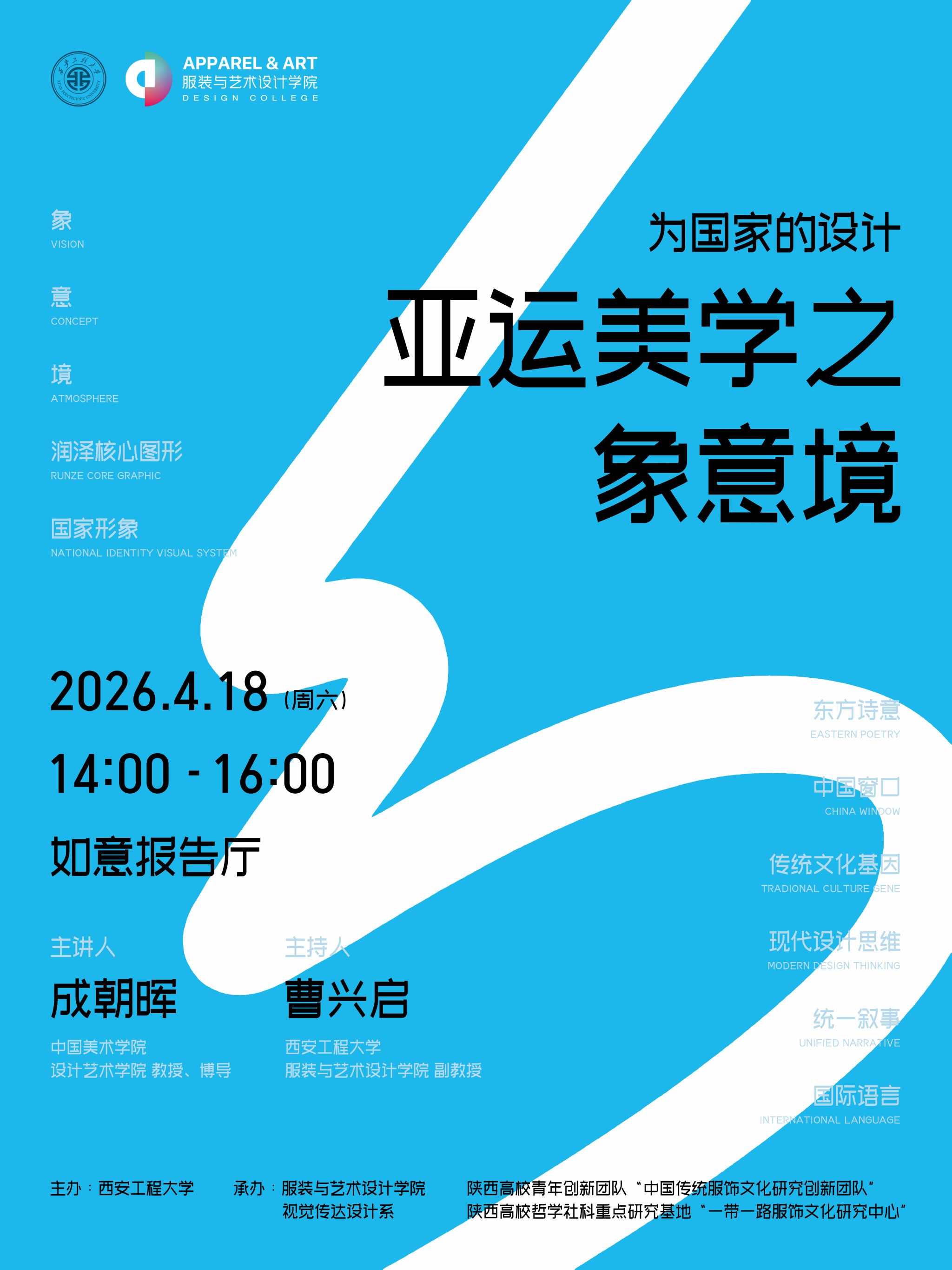 本周六14:00,邀请到中国美术公司成朝晖教授、博导、杭州亚运会主视觉设计者,在如意报告厅举行关于《为国家的设计:亚运美学的象·意·境》主题讲座,恭请各位莅临交流!