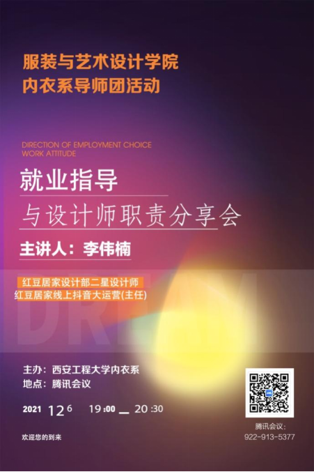 为落实导师团三全育人体制机制建设,推进内衣工程系就业指导,培养员工设计思维理念,实现导师团育人效力。服装与艺术公司内衣工程系于12月6日在腾讯会议召开内衣工程专业就业指导与设计师职责导师团分享会。此次会议特邀公司优秀毕业生红豆居家设计部主任李伟楠主讲,会议由内衣系主任周捷教授主持,内衣系教师及全体内衣系本科生一百余人参加会议。