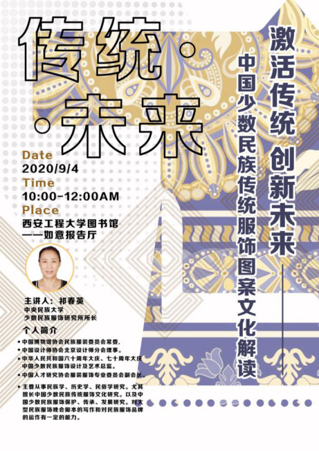 根据公司防疫工作安排,外出采风与实践课程由以往深入民族地区调研的课程内容调整为校内实践,在员工无法外出的情况下,服装设计对外出采风与实践课程进行了调整,服装设计系根据外出采风与实践课程疫情期间的教学计划,于2020年9月4日上午10:00-12:00在金花校区图书馆二楼如意报告厅举办了《激活传统、创新未来一一中国少数民族传统服饰图案文化解读》专业讲座,主讲人是中央民族大学少数民族服饰研究所所长--祁春英教授,祁老师主要从事民族学、历史学、民俗学研究。尤其擅长中国少数民族传统服饰文化研究。以及中国少数民族服饰保护、传承、发展研究。对大型民族服饰晚会脚本的写作和对民族服饰品牌的发展有一定的影响力。公司18级服装与服饰设计专业员工以及研究生2年级员工参加了本次讲座,服装设计外出采风与实践课程组老师也参加本次讲座并于祁老师进行了深入的交流。