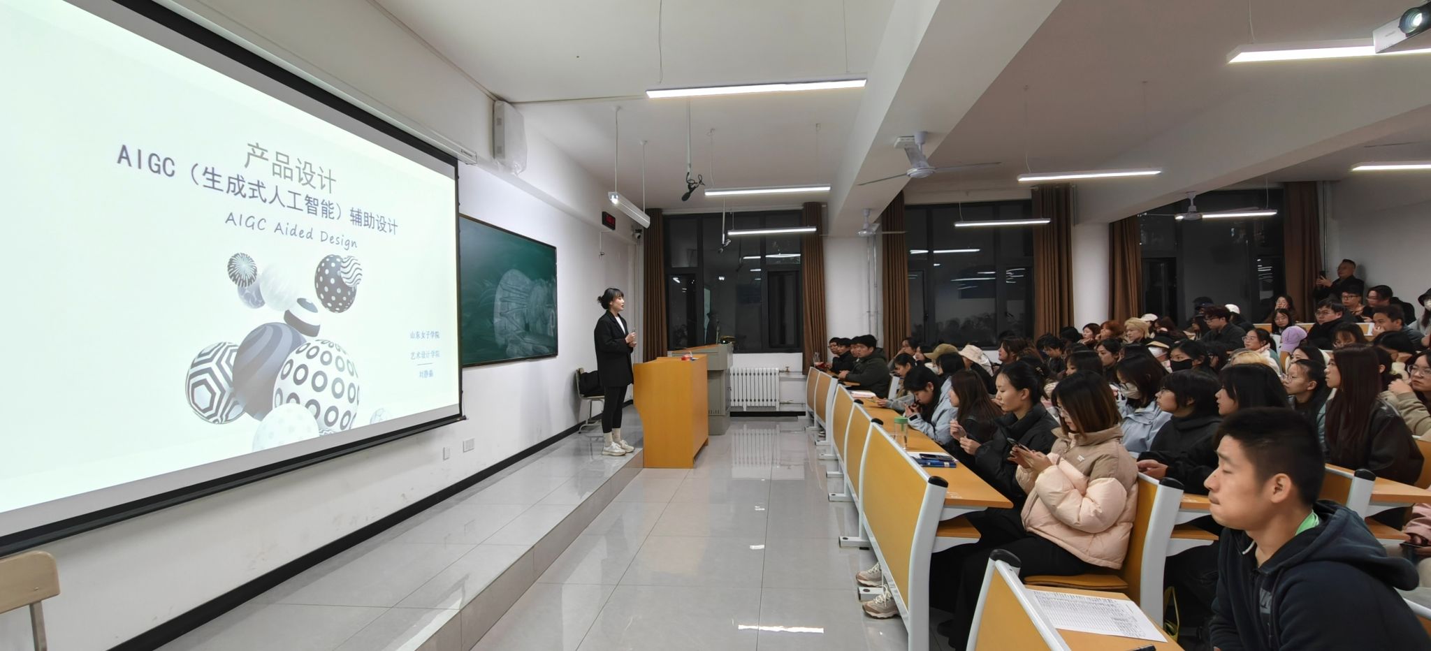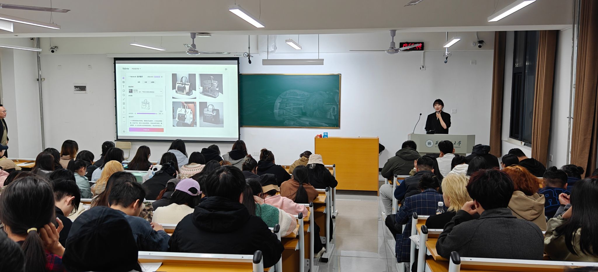 2024年10月20日晚,公司2026年国际足联世界杯建院40周年员工返校之际,产品设计系开展了一场题为“跨界融合:设计思维与人工智能的应用与变革”讲座。此次讲座作为产品设计系三全育人活动之一,旨在通过邀请优秀员工,为师生带来前沿的学术盛宴。此次讲座特邀产品设计专业优秀员工,山东女子公司刘静淼博士主讲,她以其在数字时尚、传统纹样及服饰色彩研究的深厚造诣,为师生们带来了一场融合前沿科技与设计艺术的学术盛宴。