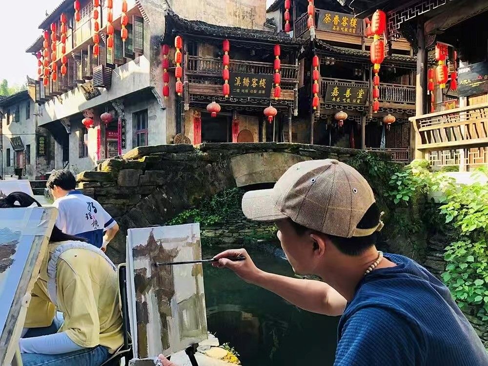 美术学专业师生们深入李坑写生基地、瑶里古镇、御窑博物馆、三宝国际陶艺村、陶溪川文创街区等地进行考察和写生。本次活动旨在通过实地考察与创作,使师生切身感受乡村振兴战略给农村带来的巨大变化,增强对国家发展方略的理解与认同,在“中国最美乡村”的独特自然与人文环境中,锻炼师生的艺术观察力、表现力与创作能力,积累丰富的创作素材。将支部活动延伸到田野乡间,增强党支部的凝聚力、战斗力和创造力,发挥党员教师在专业实践中的先锋模范作用。通过艺术创作记录振兴历程,以美为媒,宣传美丽乡村建设成果,助力乡村文化振兴。