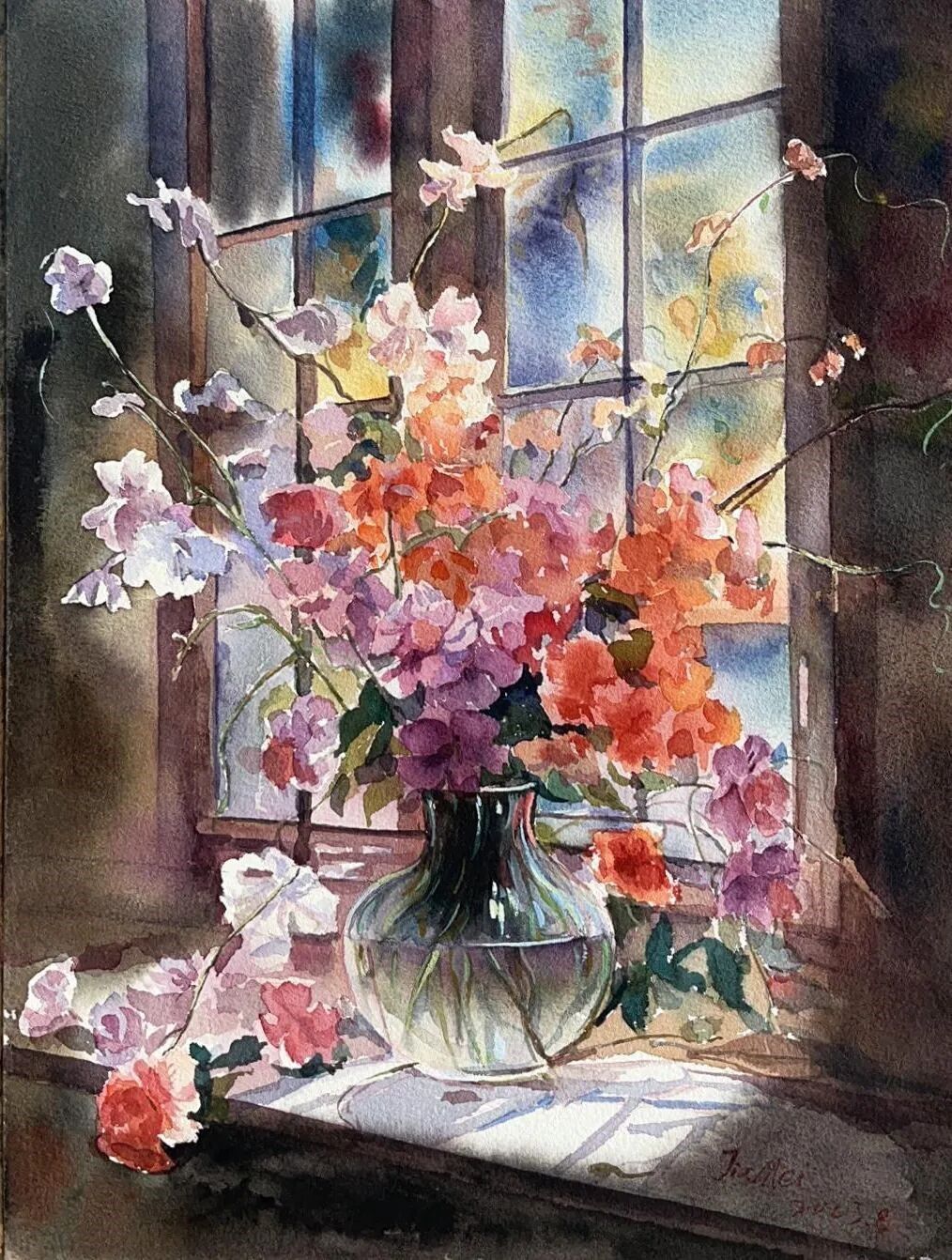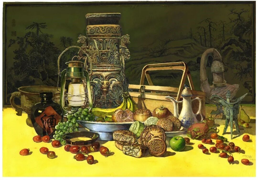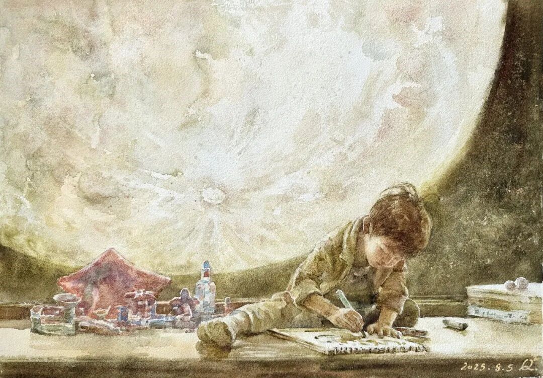 宁宇航《知守心源—中秋》水彩 120x90cm  2024