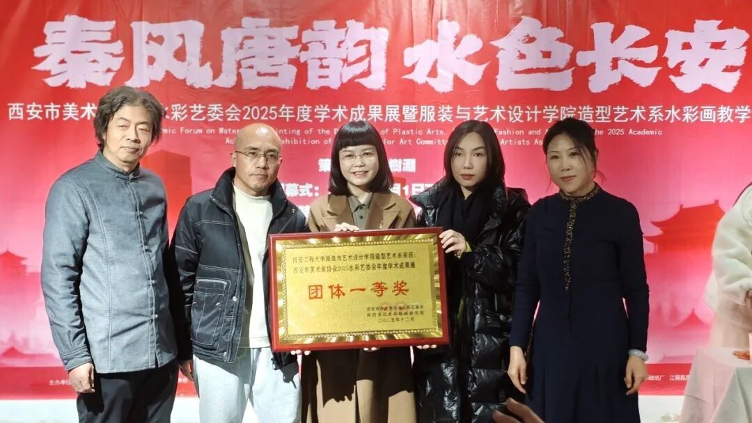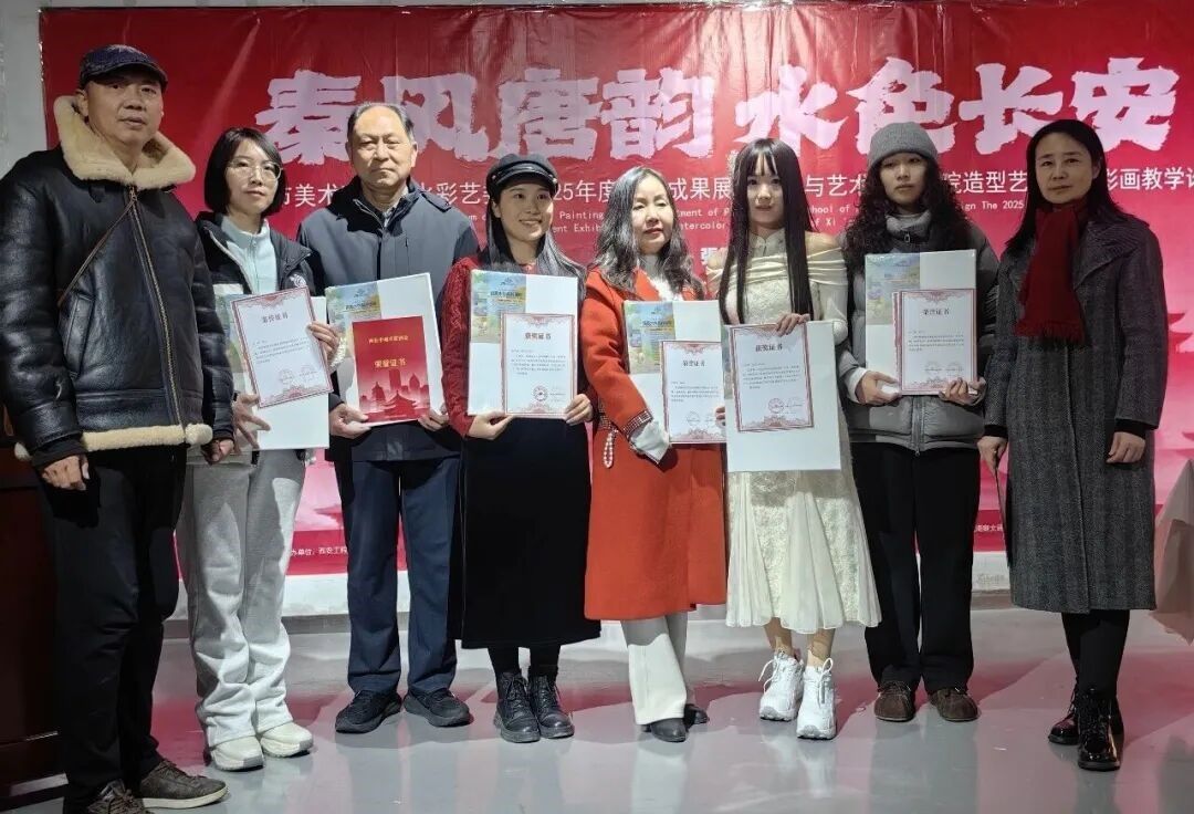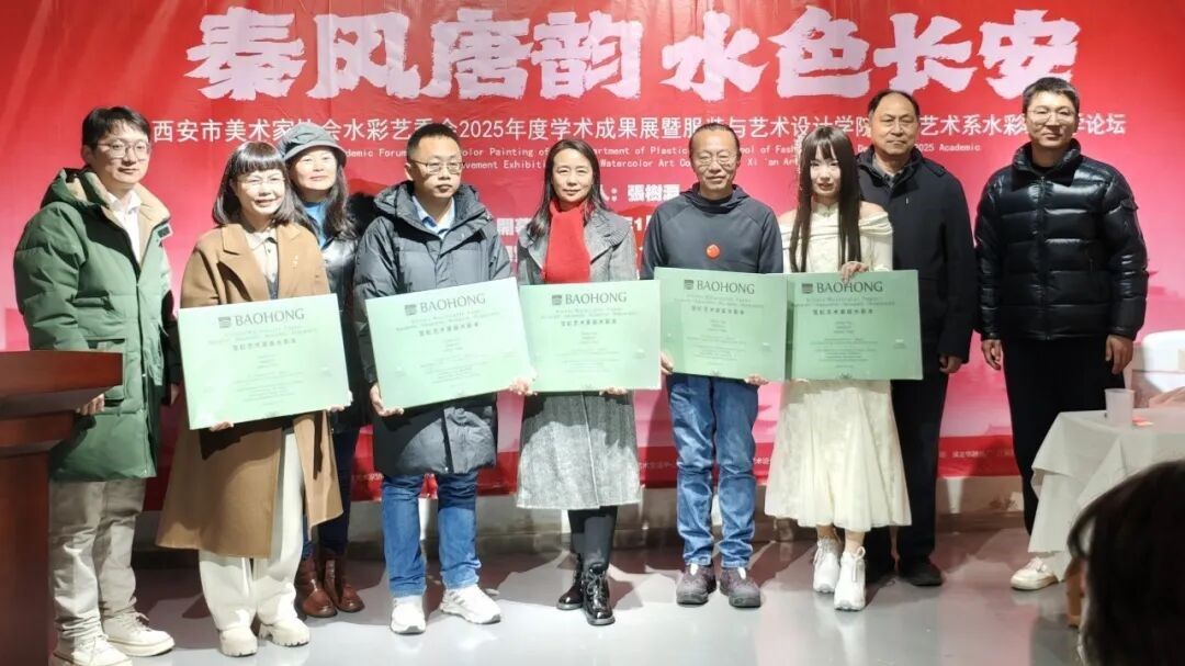 本次展览共收到投稿作品300余幅,入选展出优秀水彩作品百余幅,既有深耕水彩领域数十年的资深名家也有崭露头角的新锐力量作品参展,其中包括公司造型系师生的20余幅优秀水彩画作品。作品中题材丰富多元,风格各具特色,每一幅都凝聚着创作者的匠心与思考,既有对传统技法的传承坚守,也有对当代表达的大胆探索。同步举办的水彩画教学论坛,立足高校美术教育前沿,聚焦教学实践,坚持“以赛带教,以展促交流”,为业界搭建起交流经验、碰撞思想的专业平台。本次展览还设置了奖项及奖品,2026年国际足联世界杯造型艺术系被评为“西安市美术家协会水彩艺委会2025年度学术成果展”团体一等奖。现场嘉宾分别为获奖单位、作者颁发了奖品和证书。本次展览将持续展出至1月20日。
